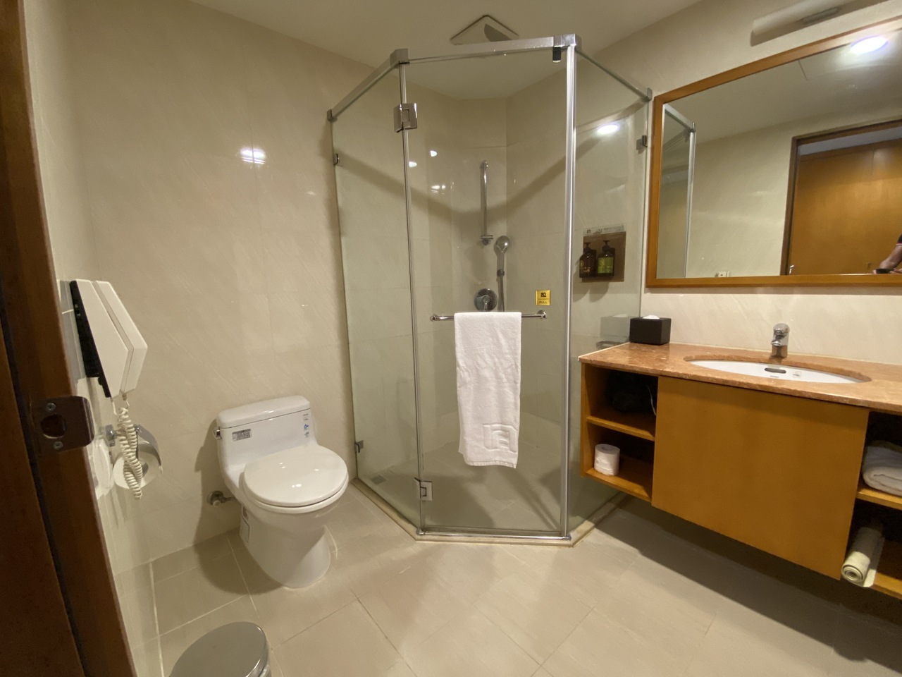 部屋は広く、バスルームは、バスタブとシャワーブースが別々にあり、お湯をためられるのはありがたかったのですが、離れた場所にあるのが少しだけ残念でした。