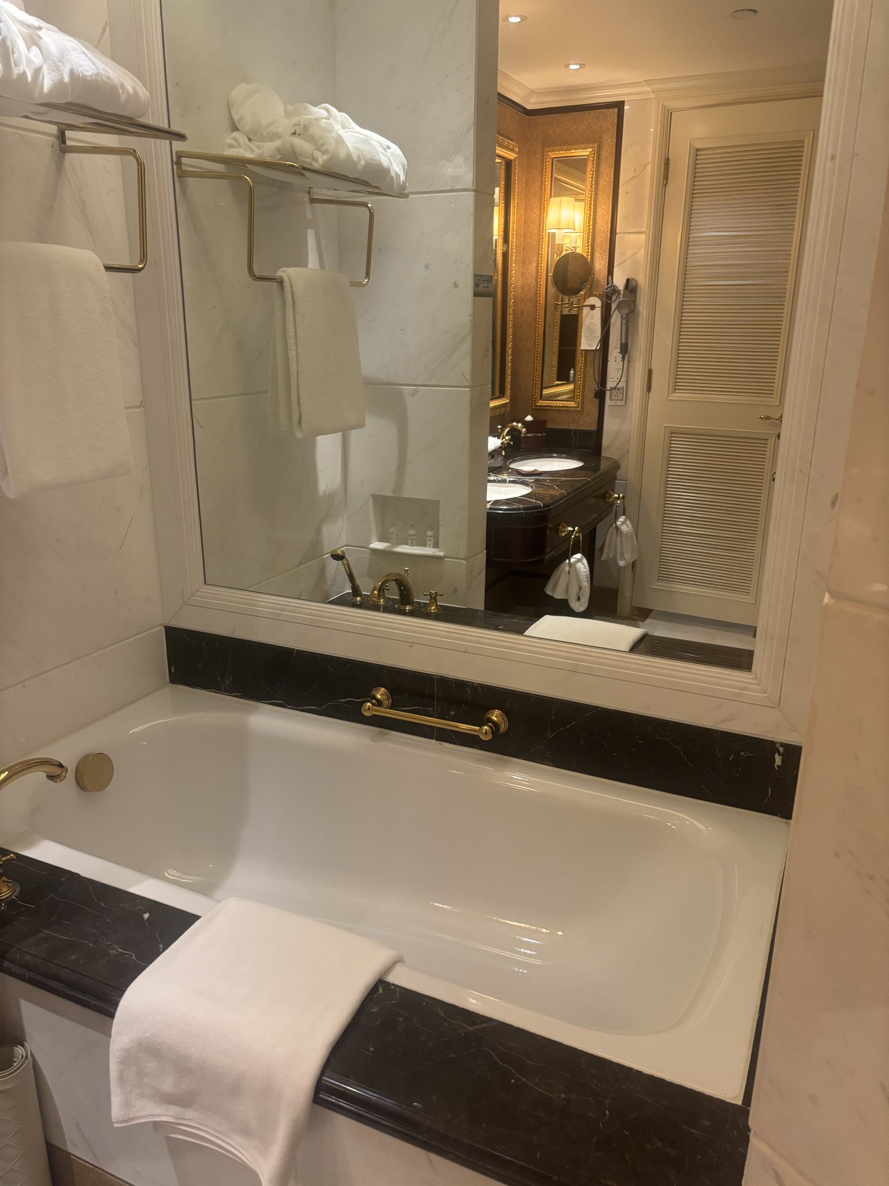 ホテルはクラシカルなつくりでフルさはそこまで感じない。部屋も広くて、バスタブとシャワールームが分かれている