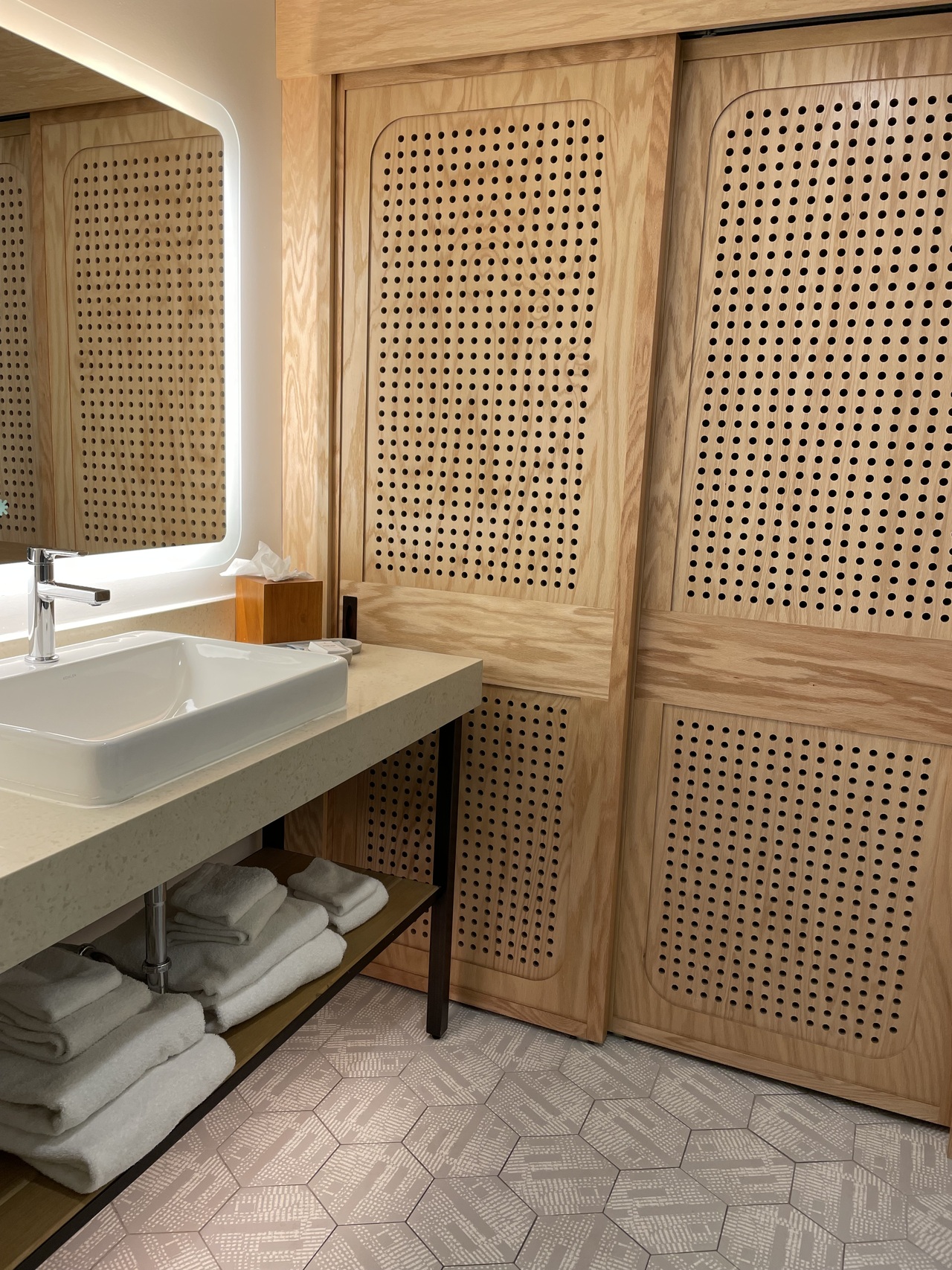 アメニティは備え付け、スリッパ、バスローブ、歯ブラシはありません。トイレとシャワーば個室でした。