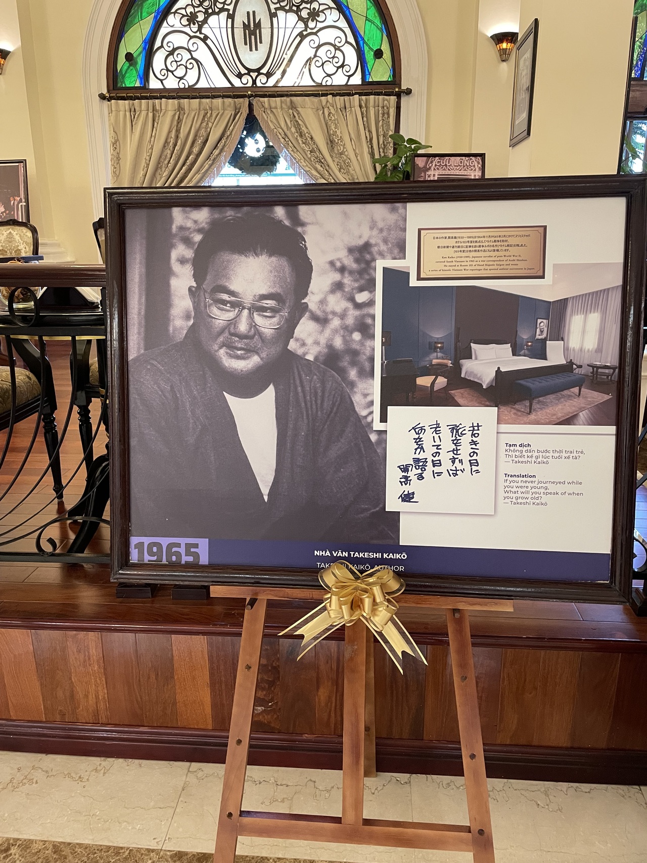 フロントのカフェ横に開高健のボードが展示されています。懐かしく、暫くの間見入ってしまいました。