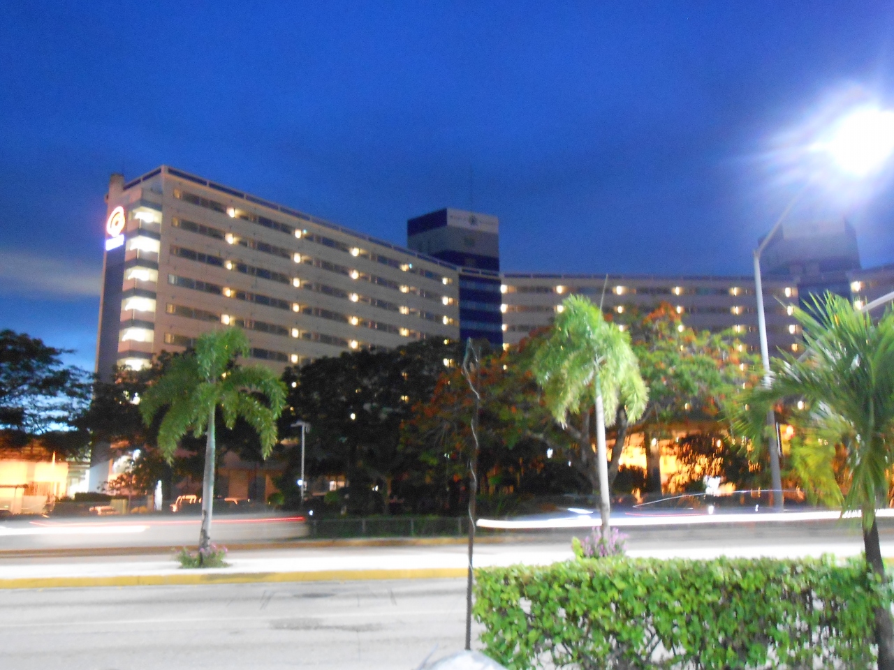 ワールドリゾートホテルの前に信号付き横断歩道があります