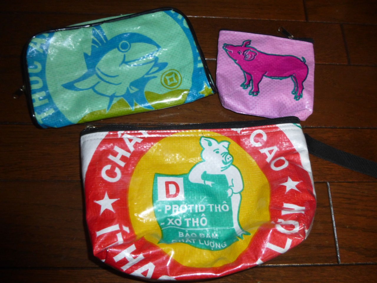 こういうポーチが気に入って…。歪んでるのもありますが。