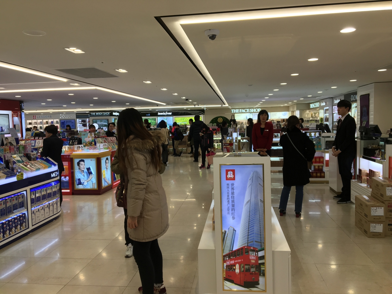 建物外観。免税品店は地下1Fから3Fまで、その他はオフィス