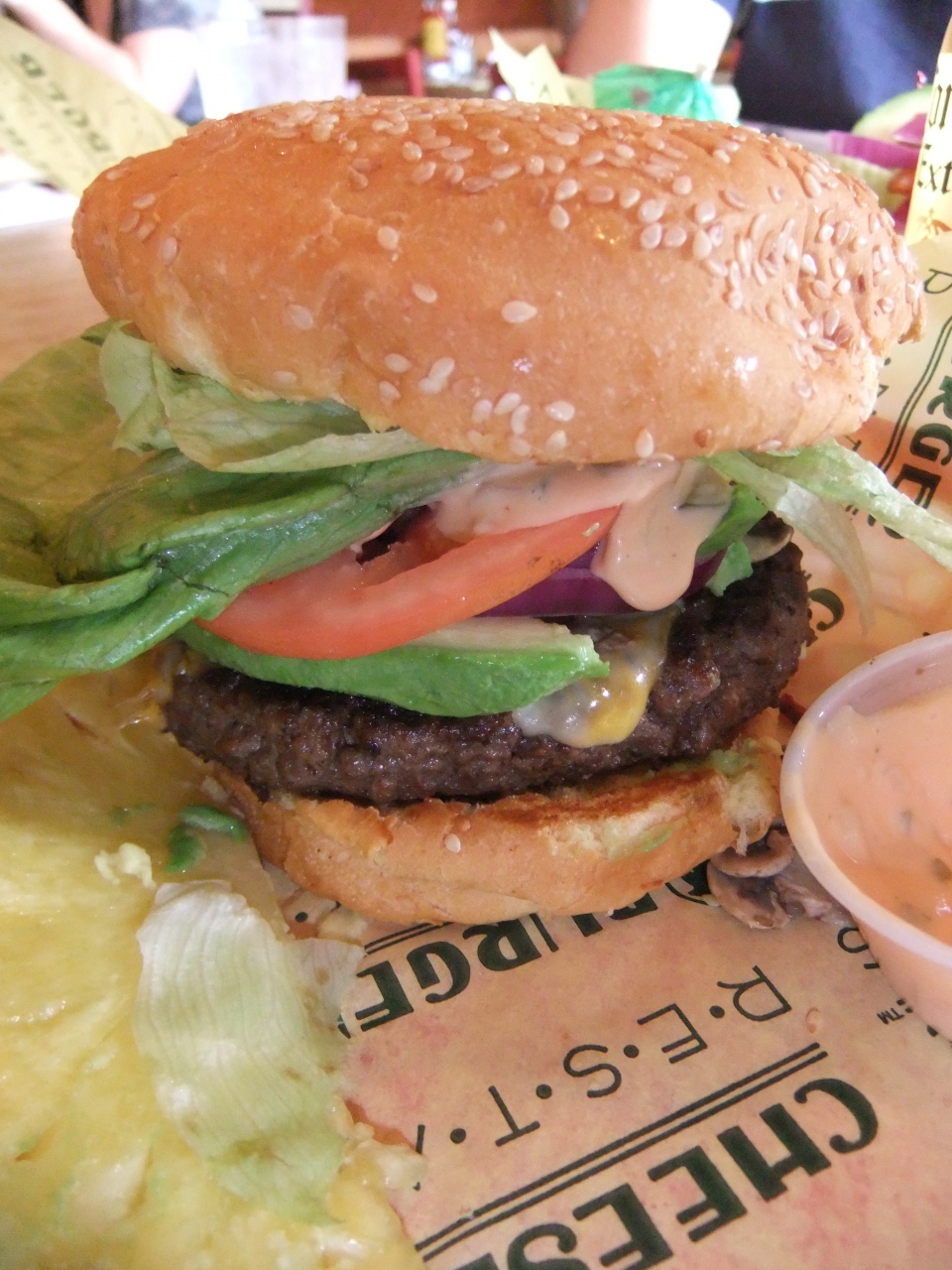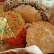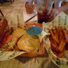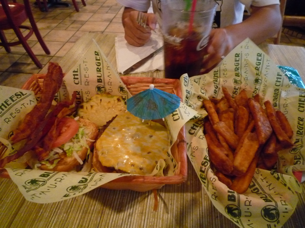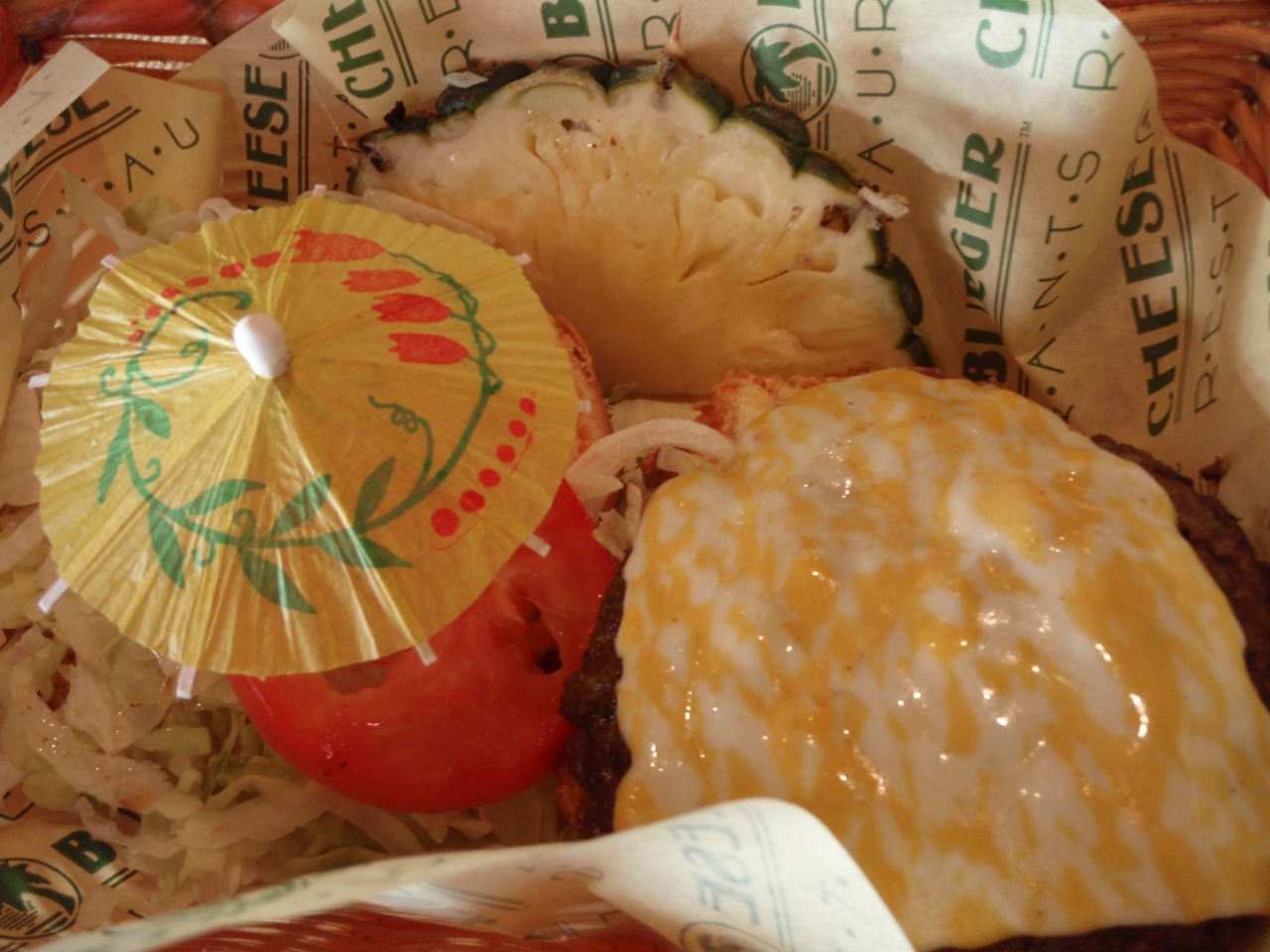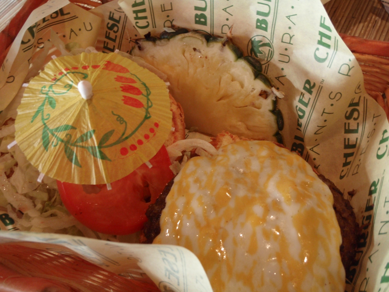 焼きパイナップルが載ったアイランド・チーズ・バーガー。