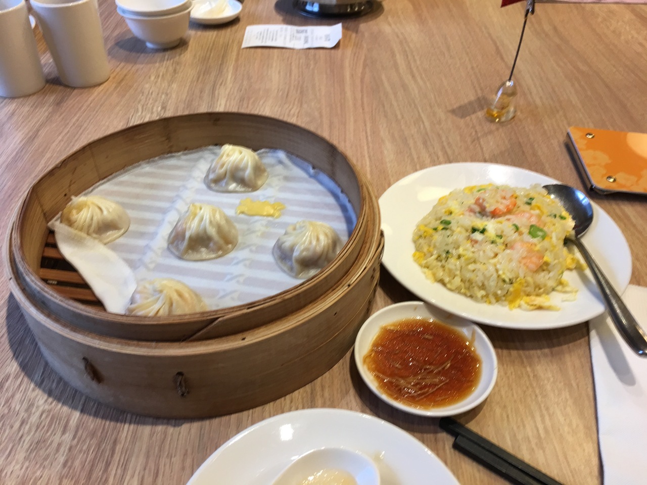 頂いたのは、ノーマル小籠包(5個) リュフ入り小龍包(5個) 豚の炒飯(ハーフサイズ ちなみに食べたかった海老炒飯は売り切れでした…) 酸辣湯。
