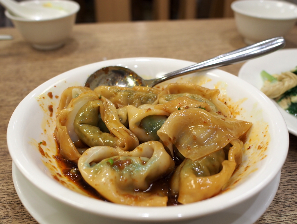 オススメなのは紅油乾麺。美味しいラー油で和えた、少し酸っぱ辛い混ぜ麺です。100元なのは嬉しい。毎回食べてしまいます。