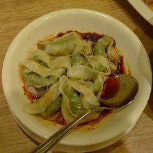 水餃子を辛いソースで絡めたものでお嬢がどこからか見つけてきた料理。