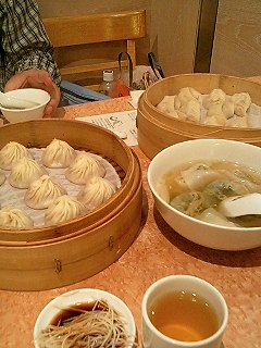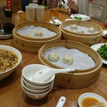 小籠包40.鶏小籠包20(普通の小籠包の方がおいしかった).トマトと卵のスープ(優しすぎる味).空芯菜の炒め(普通においしい).餅米のシュウマイ(超おいしいオススメ).おこわ(日本よりも大きいので、4人で1個でいい).蒸しパン(おいしい).ビール(生ビールも瓶)