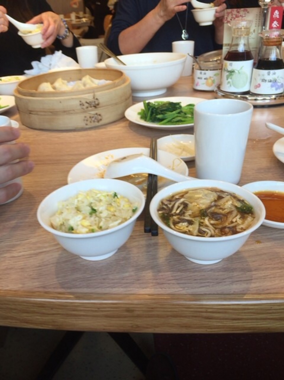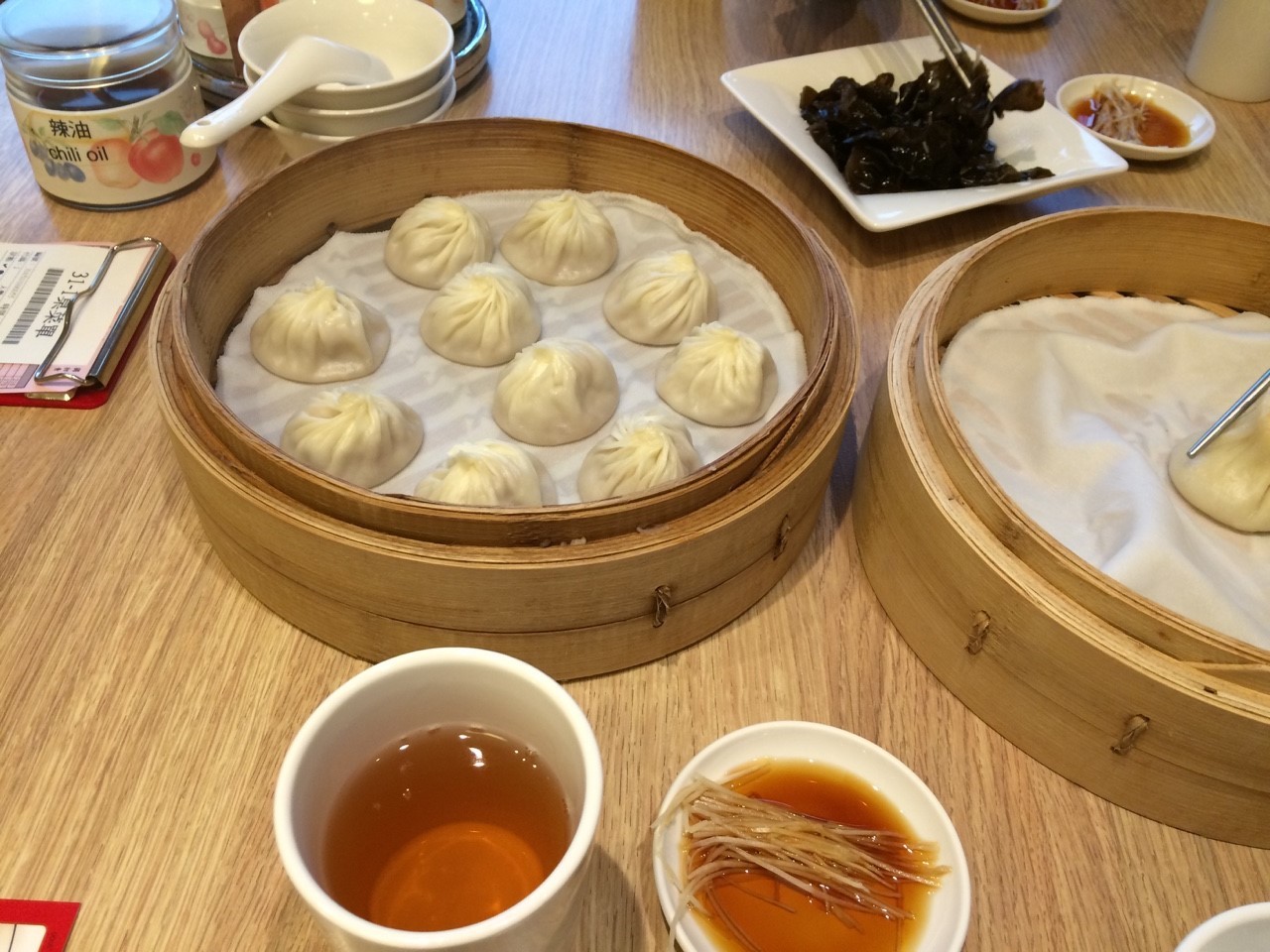 6人テーブルを三組で もちろん小龍包を注文しました。青菜炒めとスーサイタンの小サイズ 二人でお腹いっぱいで満足しました。合い席で青菜炒めがとても大きいことも事前にわかつたので注文しすぎませんでした。