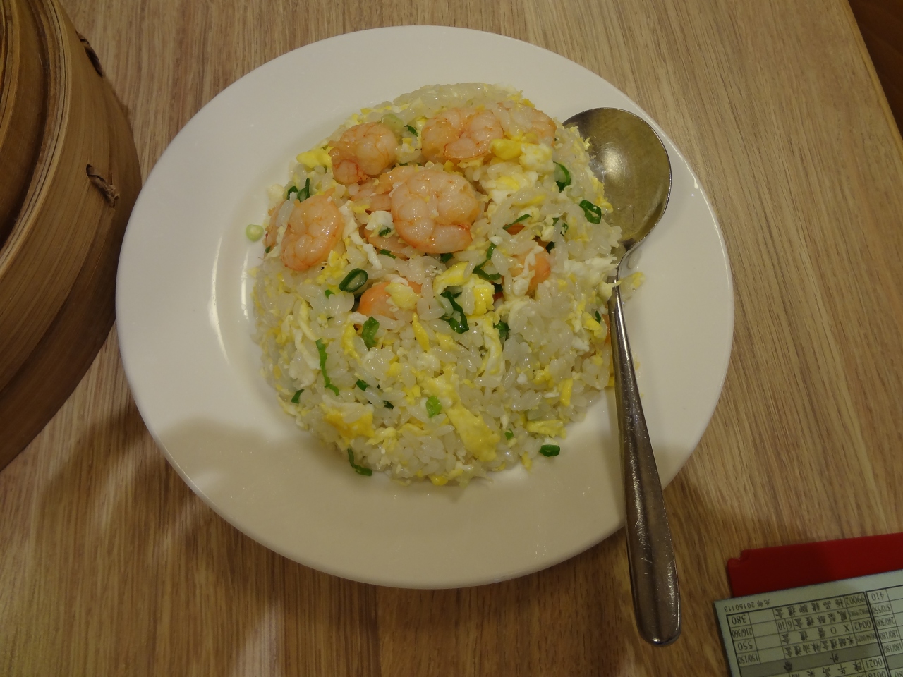 実質1時間後くらいに呼ばれて3階へ。小龍包と空芯菜炒め、エビ炒飯を注文。