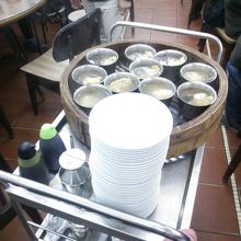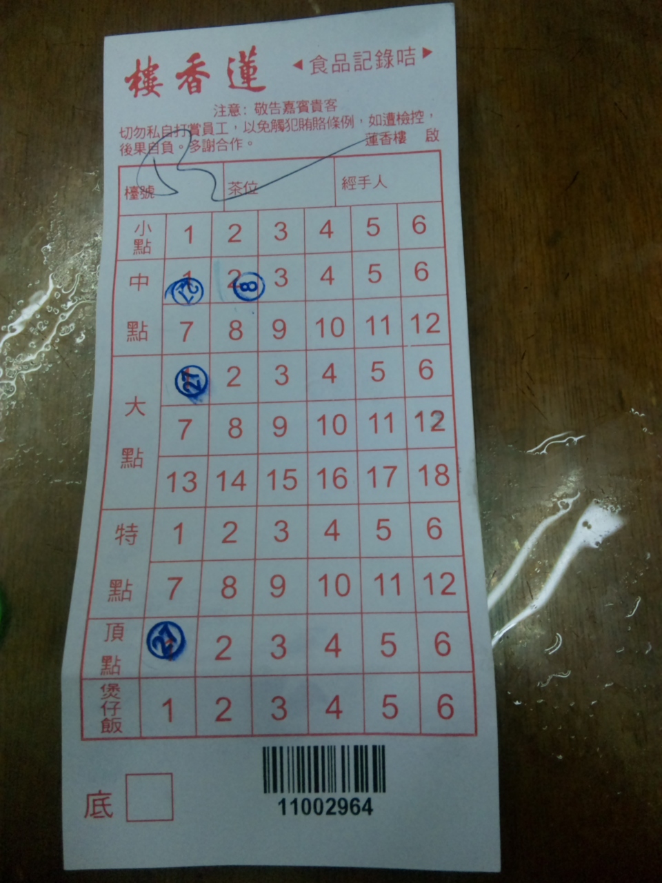 見よう見まねで、OKでした。ワゴンで運ばれてきた蒸籠やお皿の好きなものを取って、伝票にハンコウをもらいます。