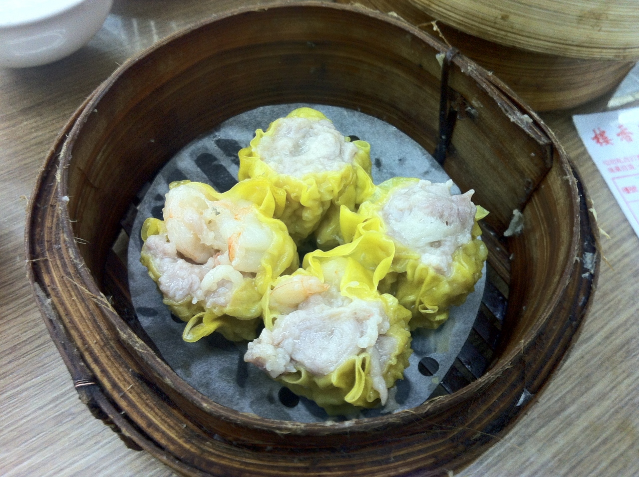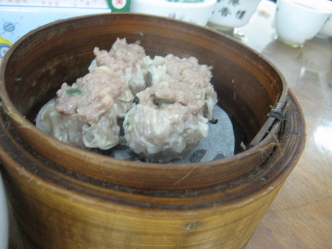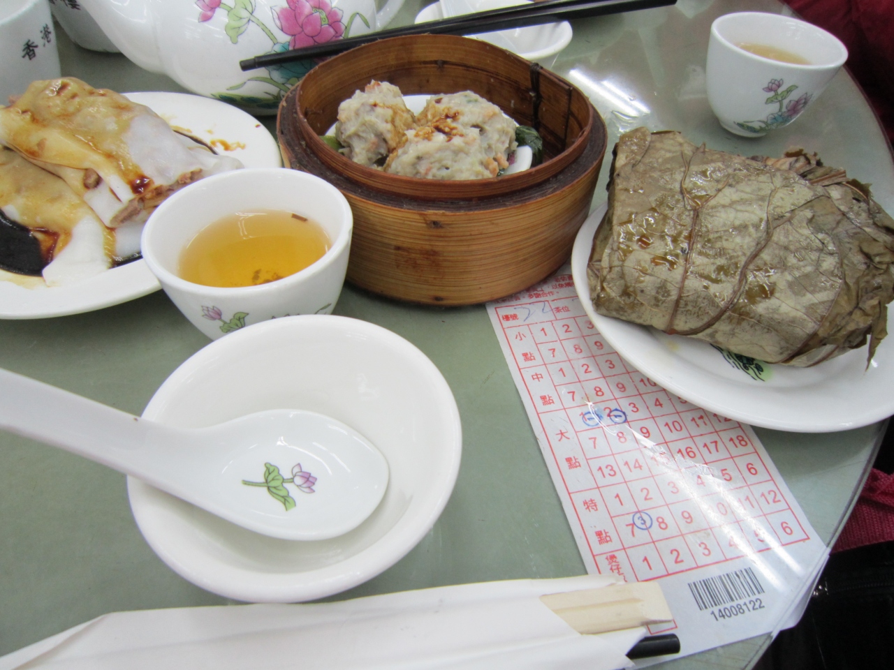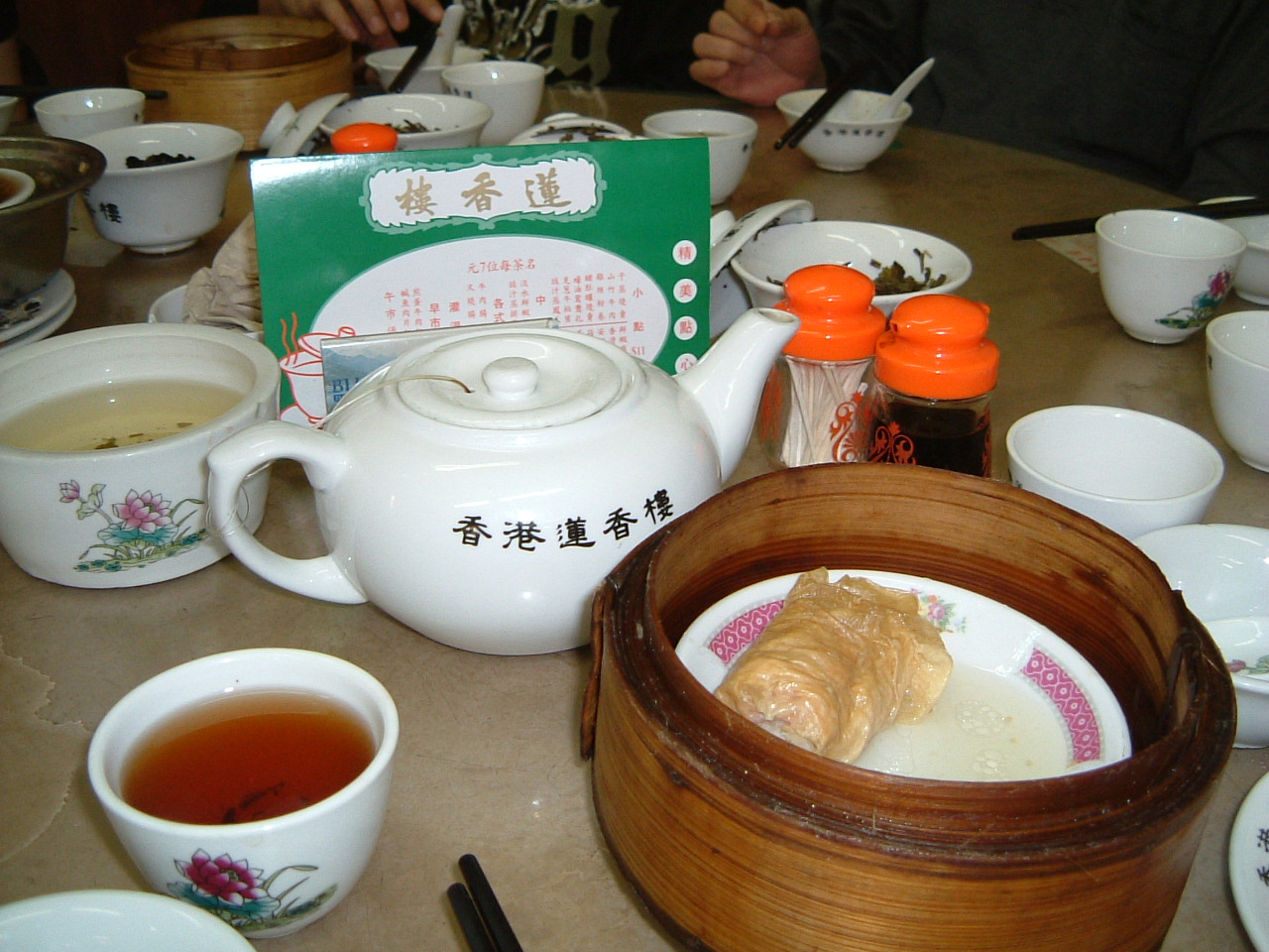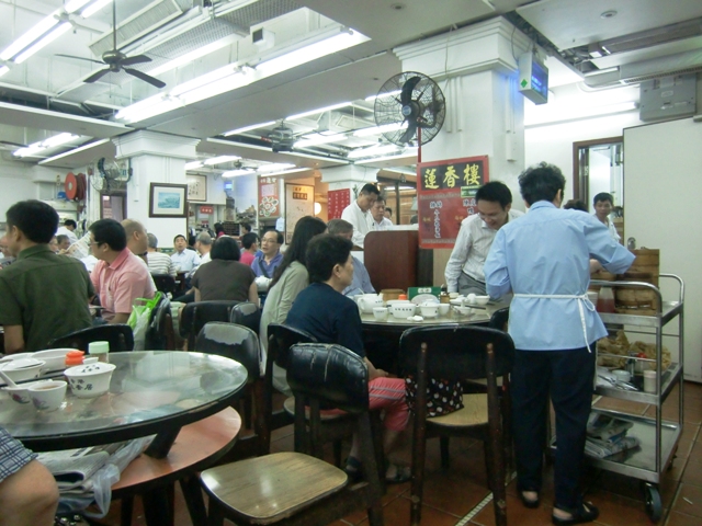 昼は混んでいるので、かなり待たされると覚悟はしていたが、幸いなことに、直ぐに席に案内された。だたし、勿論相席だった。蓮香楼... 続きを読むはオールドスタイルの店との認識があったものの、お椀、皿、箸を自分でお茶で洗って使うのには驚かされた。この香港で今も昔の習慣を意固地に守り続けている店があったとは知らなかった。友人の分も洗い終わって気付いたが、人々の話し声の大きいこと!小声では友人と会話ができなかった。料理は、売り子が料理名を大声で言いながら、料理を載せたワゴンをひいていた。これも昔スタイルだ。ウエイターが、あれが”シュウマイ”のワゴンだよ、と教えてくれたので、シュウマイ、蝦餃子、蝦の湯葉まきのセイロを選び、食べたが、みな冷めていた。