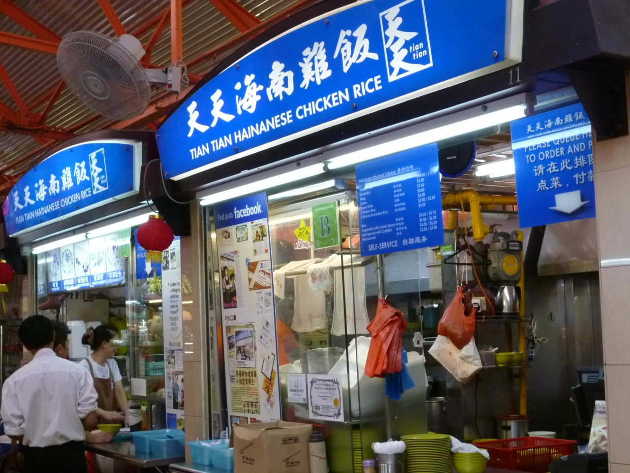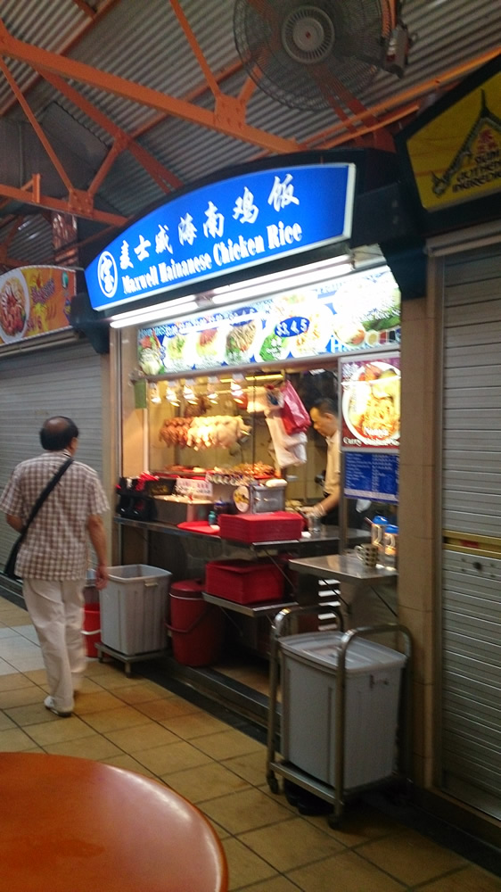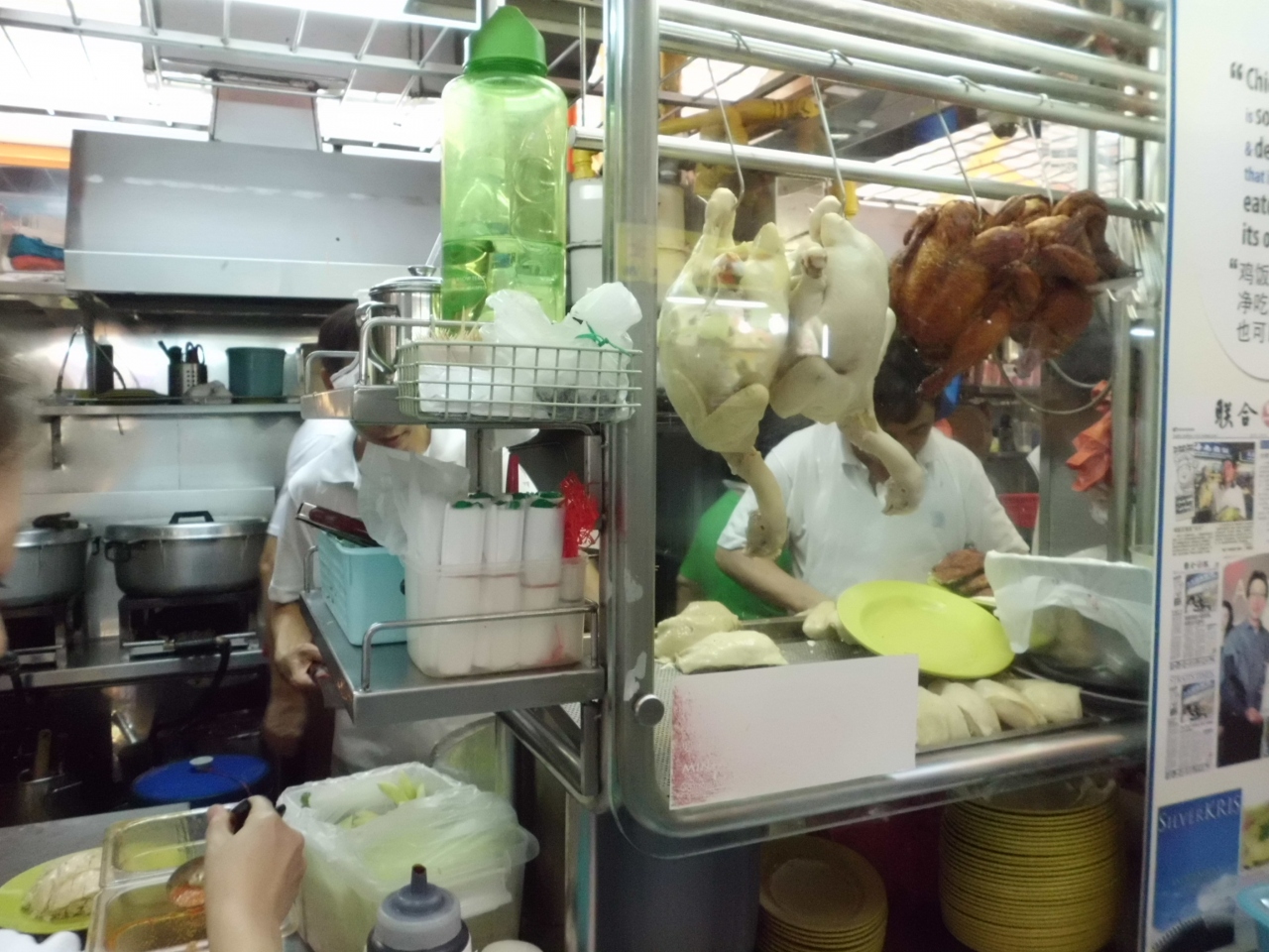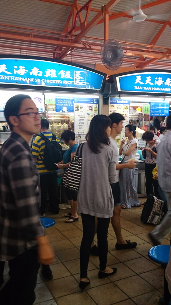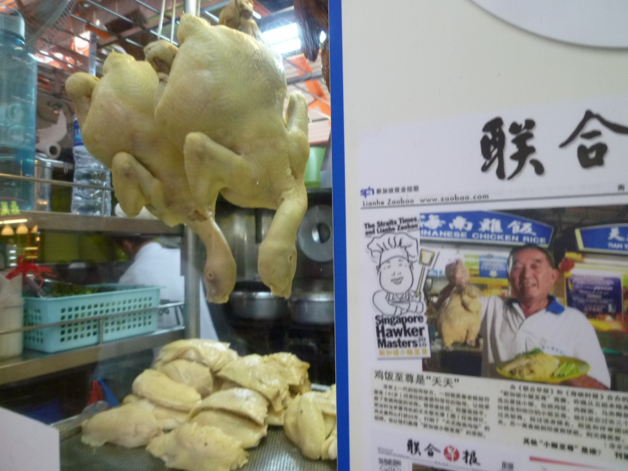 その記事でも天天海南鶏飯は「シンガポール名物料理の有名店」として取り上げられているのでしょう、次から次へとお客さんがやって来ます。そのチキンライス人気にあやかってか、現在マックスウェルには六店のチキンライス屋さんがあります。でもいつも天天にばかり長い行列が出来てしまい、他のお店にお客さんがやって来るのは天天が売り切れて店じまいをした後になってから。どうなんでしょうね、やっぱり雑誌や旅行本で取り上げられたお店に行きたくなりますか?ハズレのクジを引くのは嫌でしょうからね・・・。