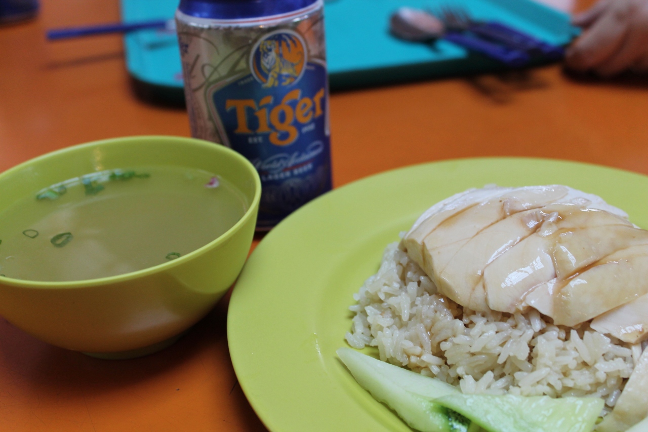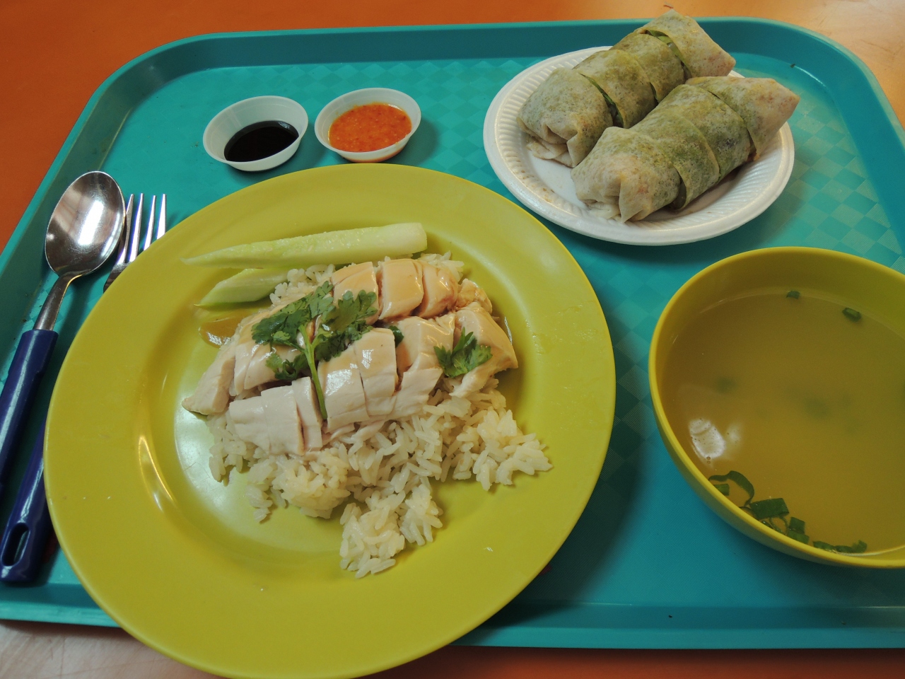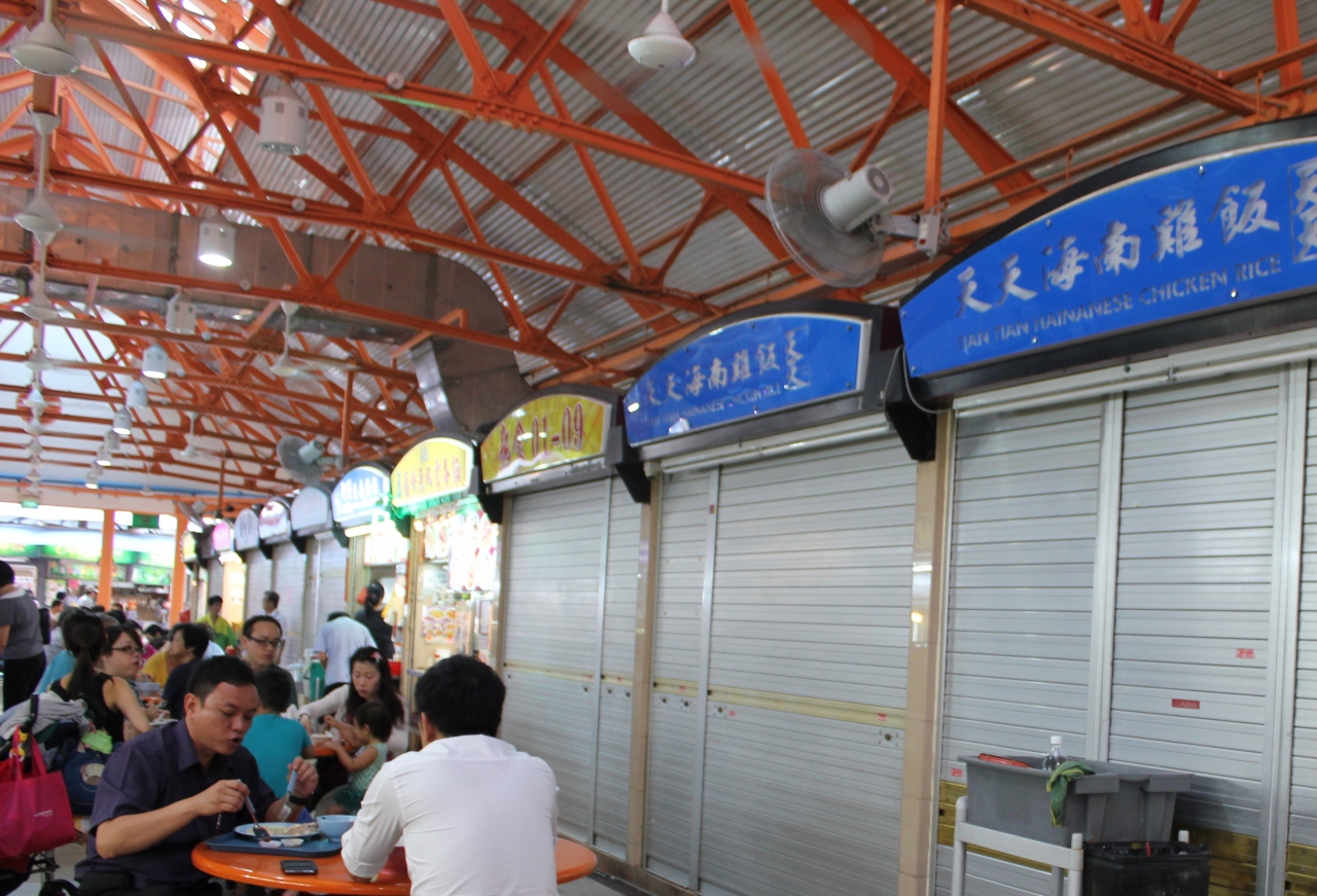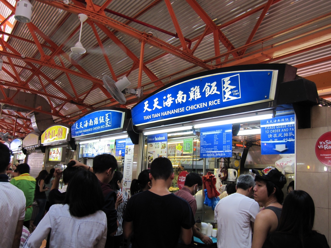 その記事でも天天海南鶏飯は「シンガポール名物料理の有名店」として取り上げられているのでしょう、次から次へとお客さんがやって来ます。そのチキンライス人気にあやかってか、現在マックスウェルには六店のチキンライス屋さんがあります。でもいつも天天にばかり長い行列が出来てしまい、他のお店にお客さんがやって来るのは天天が売り切れて店じまいをした後になってから。どうなんでしょうね、やっぱり雑誌や旅行本で取り上げられたお店に行きたくなりますか?ハズレのクジを引くのは嫌でしょうからね・・・。