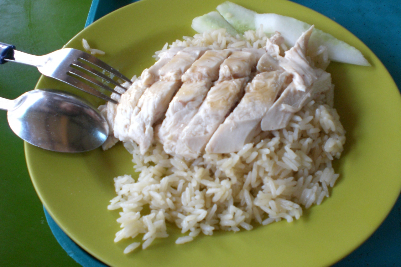 その中で、ガイドブックに必ず載っている超有名なチキンライスのお店「天天海南鶏飯」でチキンライスを食べました。
