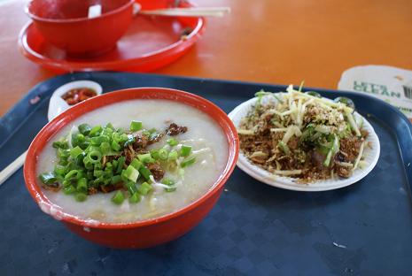 Maxwellのホーカーズには海南鶏飯の有名店が入っているのだけど、まだ開店前だったため、もうひとつの有名店である真真粥品... 続きを読むへ。行列ができていたので私も一緒に並んでみると、なんと20分も待たされた。列はそんなに長くないけど時間がかかるらしい。何がお勧めかお店の人に聞いてみると超無愛想で英語も通じなく、私の前に並んでいたおじさんに助けてもらう。そのおじさんお勧めの魚粥と魚生(刺身のことらしい)を頼んでみる。SD4.5だったかな?