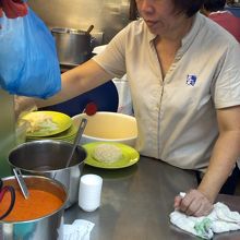 中国語で注文すると、ここのオバチャンはなかなか親切で空席を探してくれたり、大盛サービスしてくれたりしました。