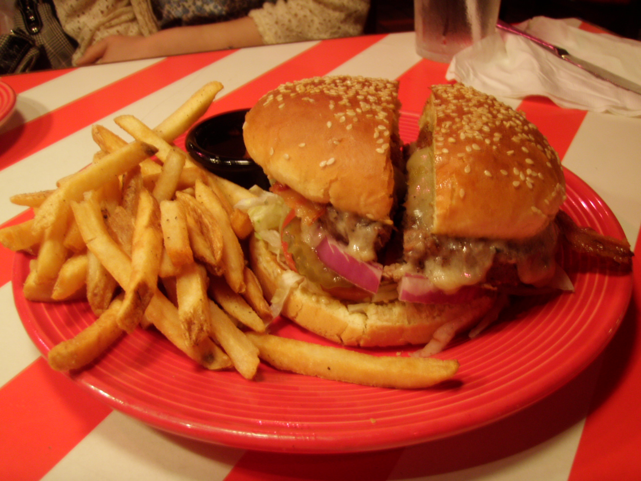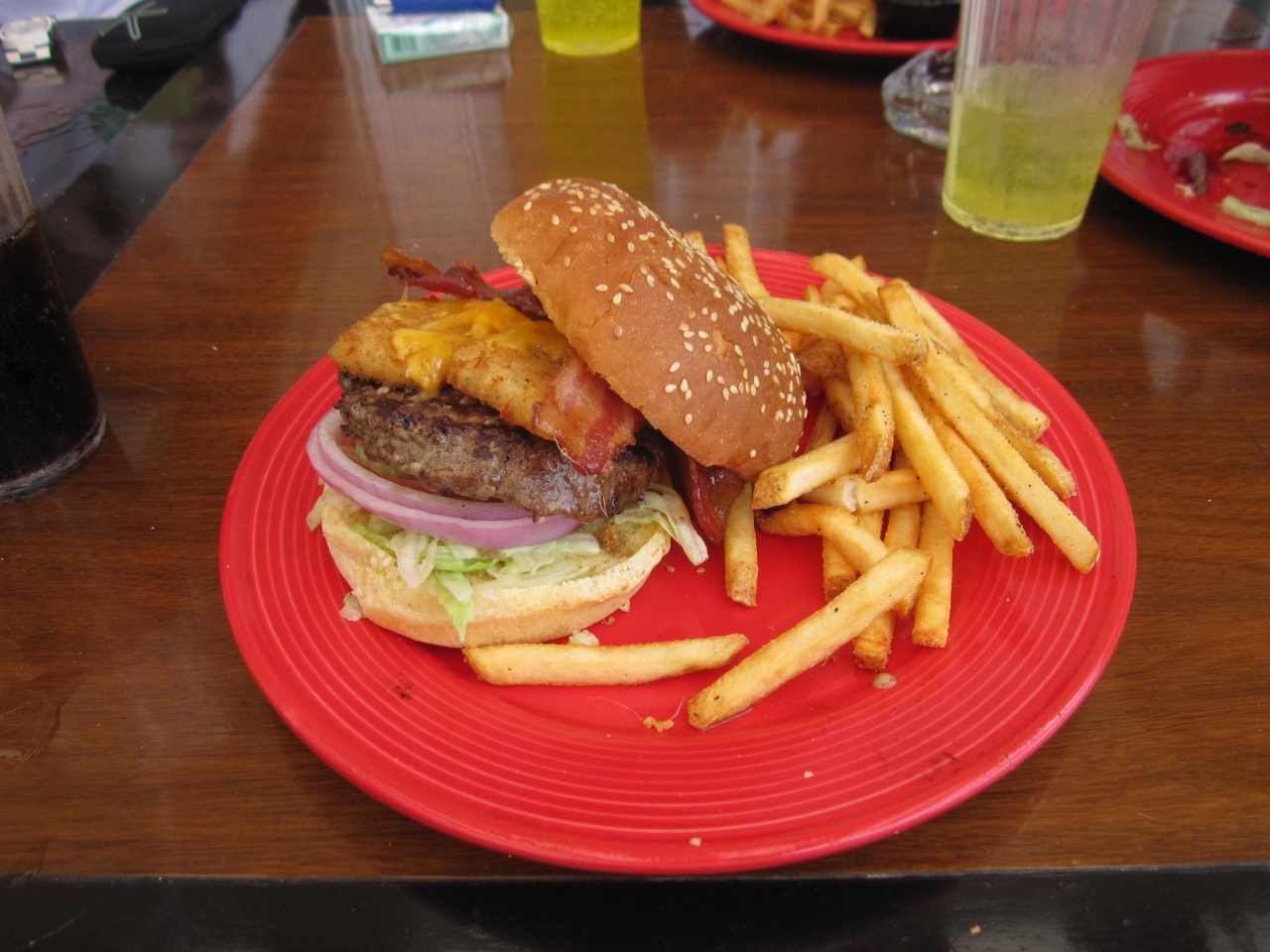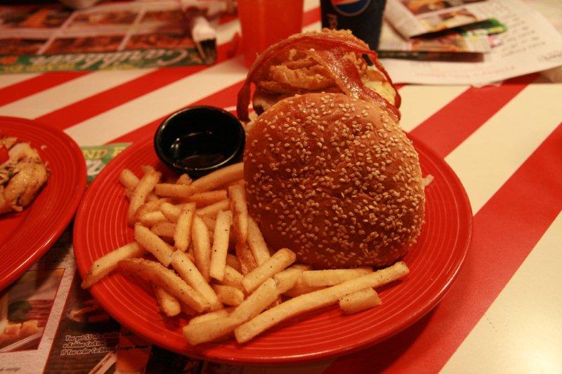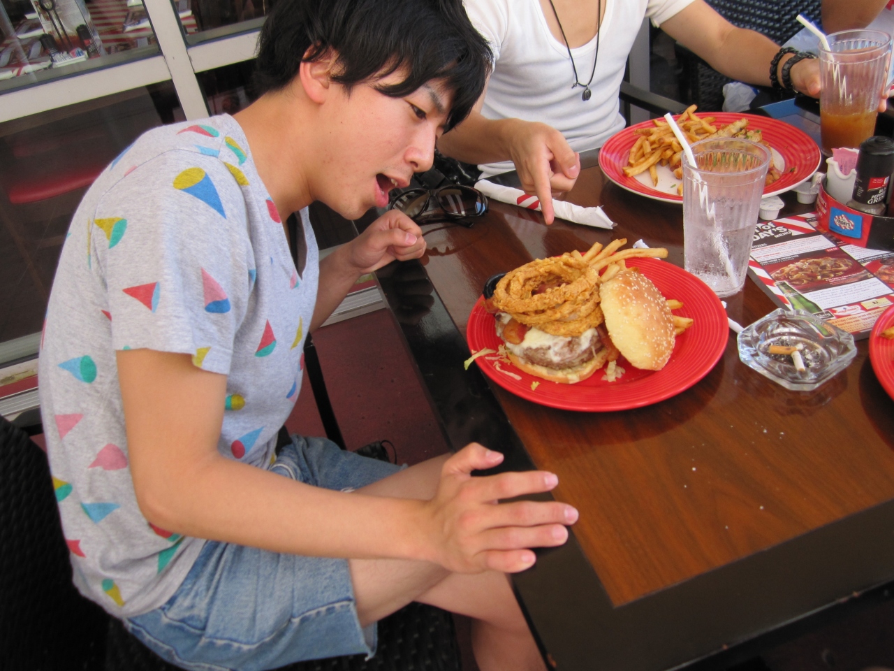 ハンバーガーに添えられていたフライドポテトの量に思わず苦笑。ちょこっと「添えられている」という程度じゃなく・・・食べている途中で「アメリカ人って凄いな・・」なんて思ってしまった程・・。ステーキの肉は・・うん・・固かったです・・。