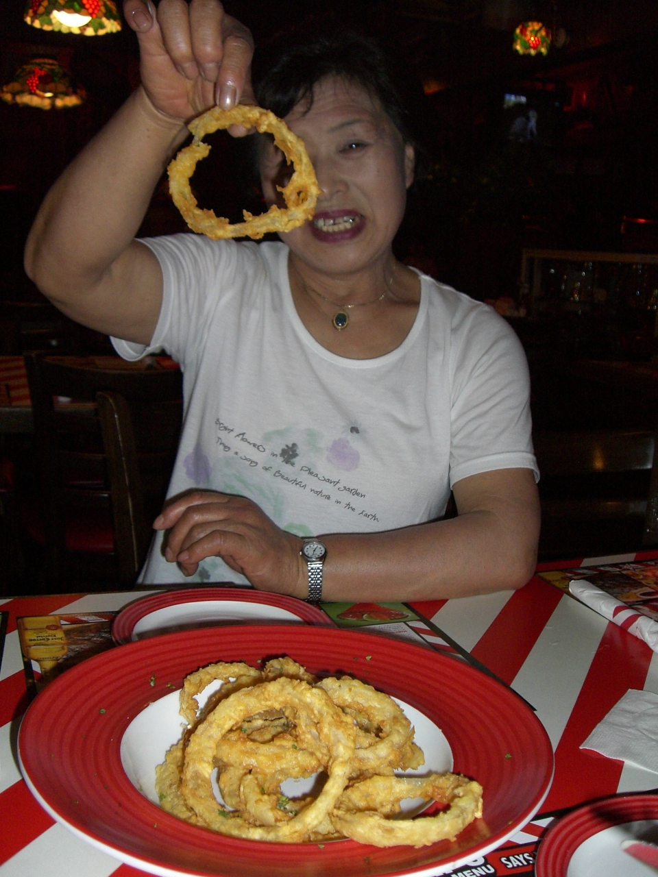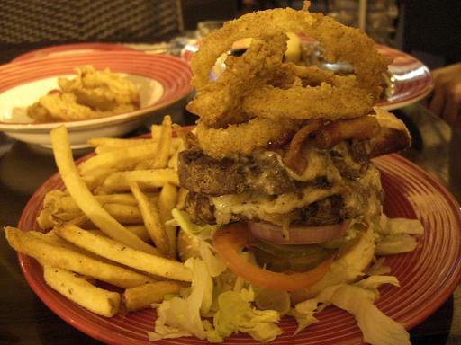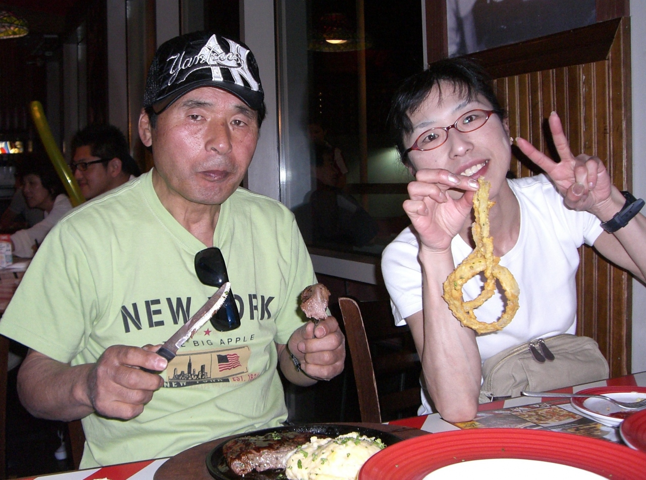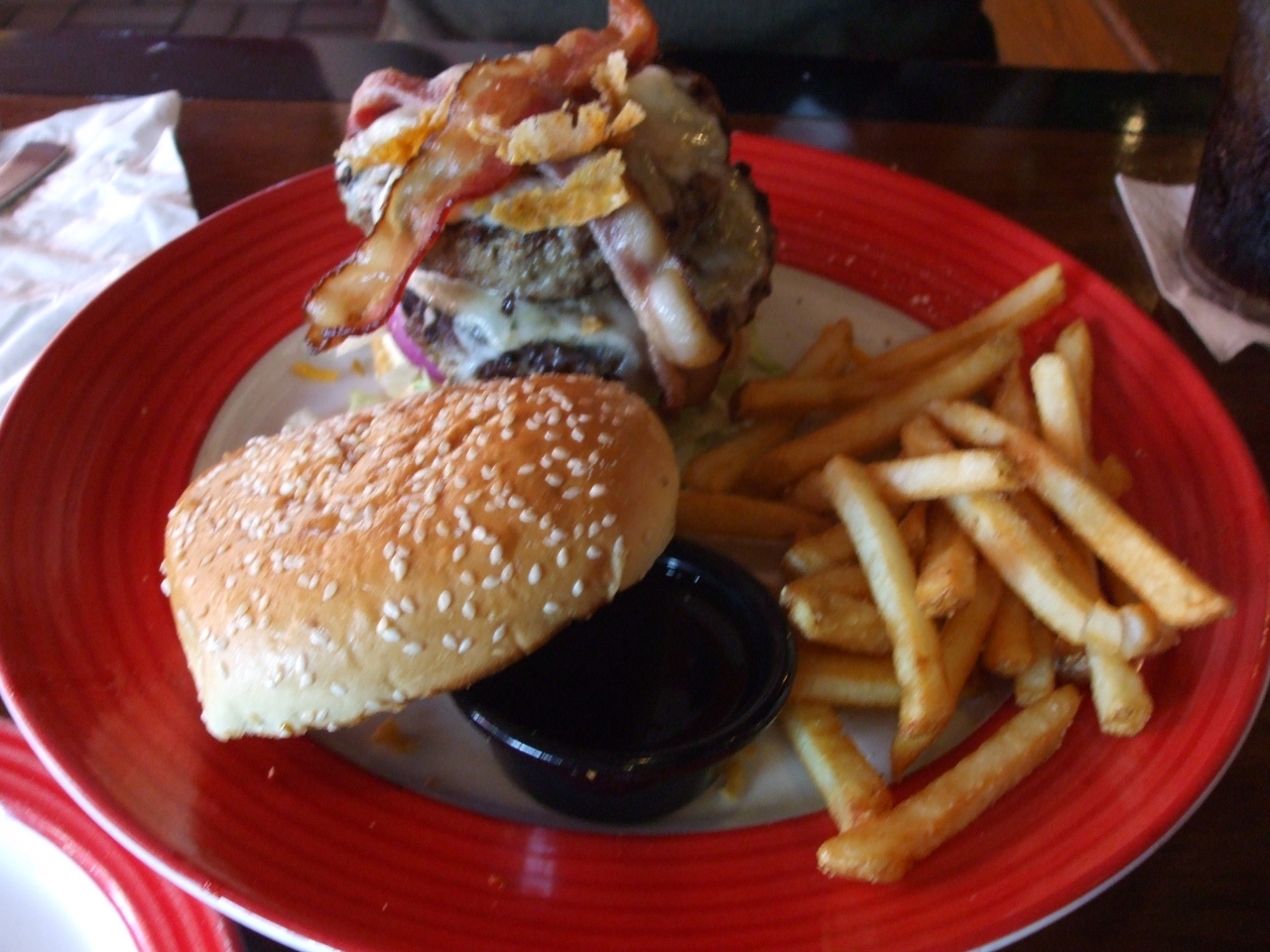 ハンバーガーに添えられていたフライドポテトの量に思わず苦笑。ちょこっと「添えられている」という程度じゃなく・・・食べている途中で「アメリカ人って凄いな・・」なんて思ってしまった程・・。ステーキの肉は・・うん・・固かったです・・。
