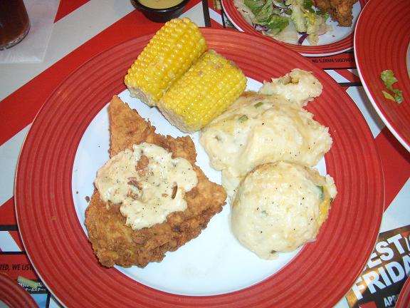 ポテトスキンとバファローウィングチキン、モツァレラフライの三種盛りと、シュリンプフライデーズ、ジャックダニエルステーキを食... 続きを読むべました。ジャックダニエルステーキのソースはかなり甘めなので、甘い味付けが苦手な人はご注意を。料理はどれもなかなか美味しかったです。2歳の子供がポテトスキンを喜んで食べていました。店内の雰囲気は楽しげで、感じの良いお兄さんがテーブルを担当してくれたこともあり、気持ちよく食事ができました。店が適度にざわついていて、多少子供がぐずっても店内で目立ってしまうようなことはありませんでした。といっても、食事が出てきてからは子供はまったくぐずりませんでしたが。料理は予想していた以上にボリュームがありました。食べ切れなかった分はパックにつめてもらい、持ち帰りました。 閉じる