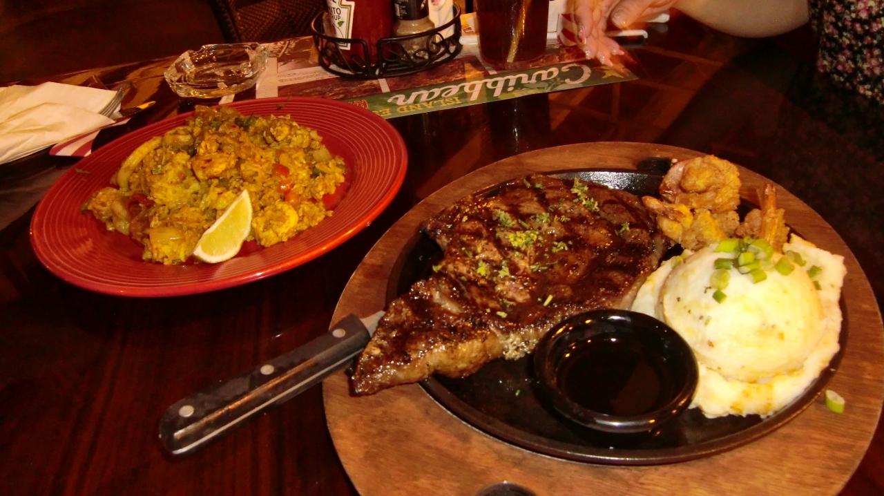 プラザホテルに隣接していて、隣は免税店なのでアクセスは◎だと思います。店内に入ると喫煙か禁煙を聞かれ、本当は禁煙でも良かっ... 続きを読むたのですが雰囲気を味わいたかったので喫煙の方のテラス席に通してもらいました。テラス席だけかもしれませんが、スタッフの若いお兄ちゃんが空になったドリンクの瓶でジャグリング?っぽいことをしながらお客さんを楽しませてくれたので、料理が出てくる待ち時間も楽しめました。日本人の方は大きなハンバーガーをオーダーしている方が多かったみたいです。私は食べきれる自信が無かったので、オススメを聞き「カリビアン~?」(名前は忘れました)というピラフのようなスパイシー料理をオーダー。熱々で美味しかったですよ! 閉じる