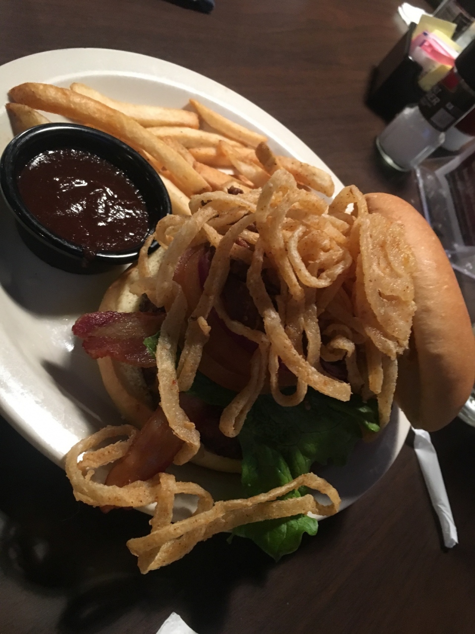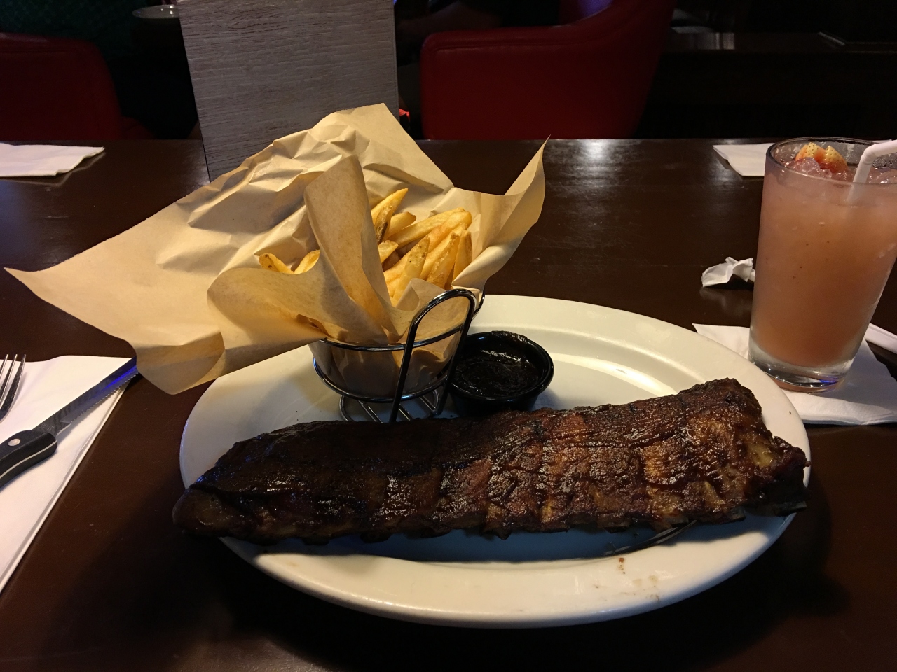 バーガーは肉の臭みがありあまり美味しくはありませんでした。ソースは黒蜜のような味で、お肉やポテトに合うかは微妙な感じですが、バリエーションの1つとしては楽しかったです。LoneとかHard Rock Cafeの方が全然美味しいです。