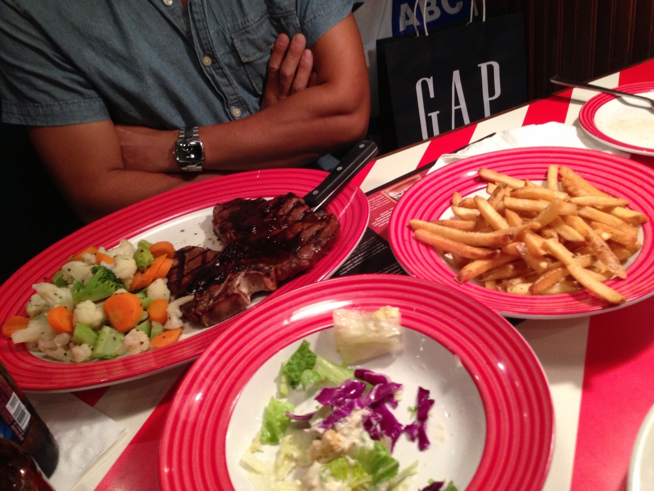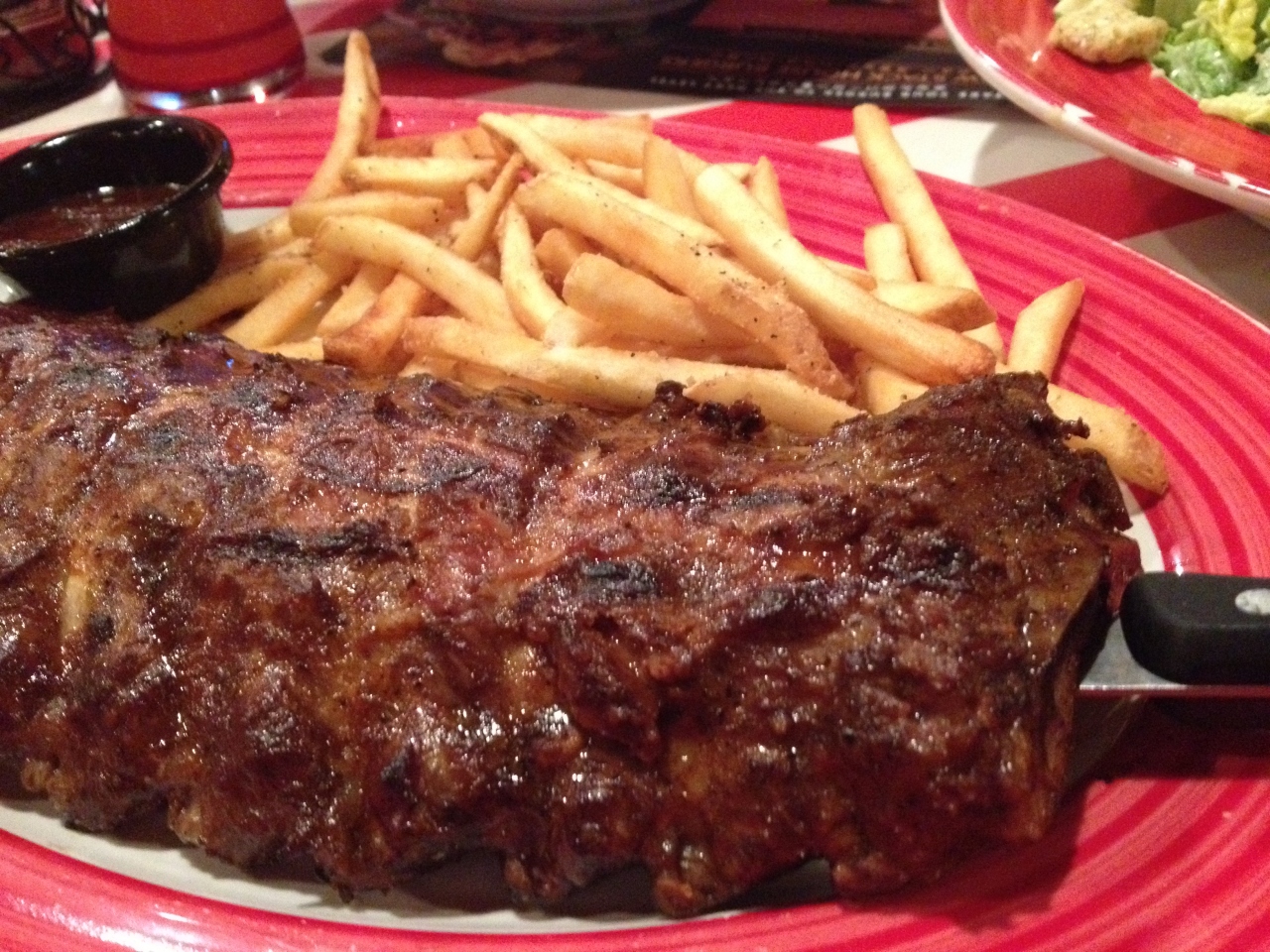バッファローウイングとステーキとベービーバックリブとサラダを頼んだのですが、すごいボリュームで食べきれないくらいでした。