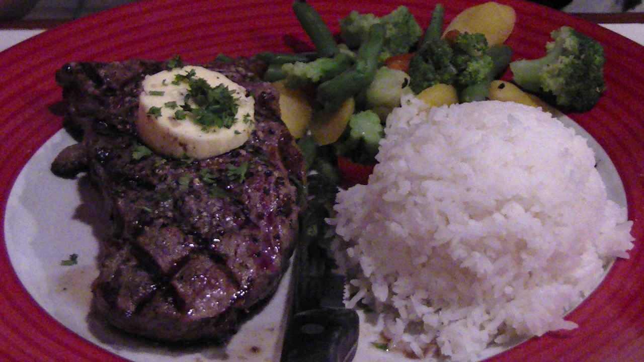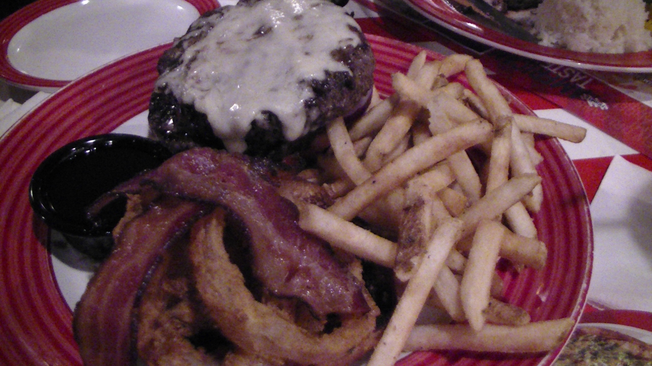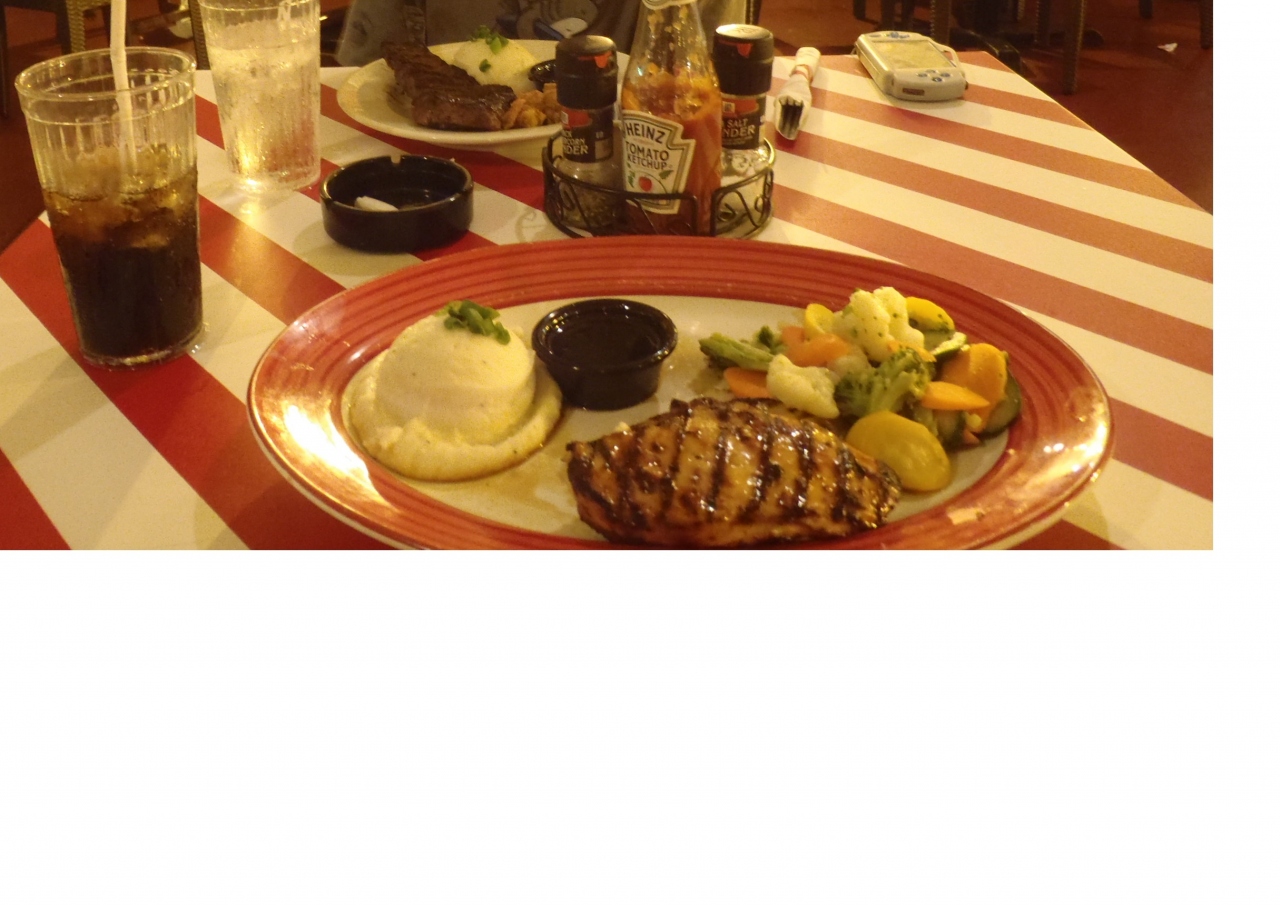 主人のステーキはおいしかっちょうですが、私のチーズバーガーはとくに味がなく、半分以上残しました。