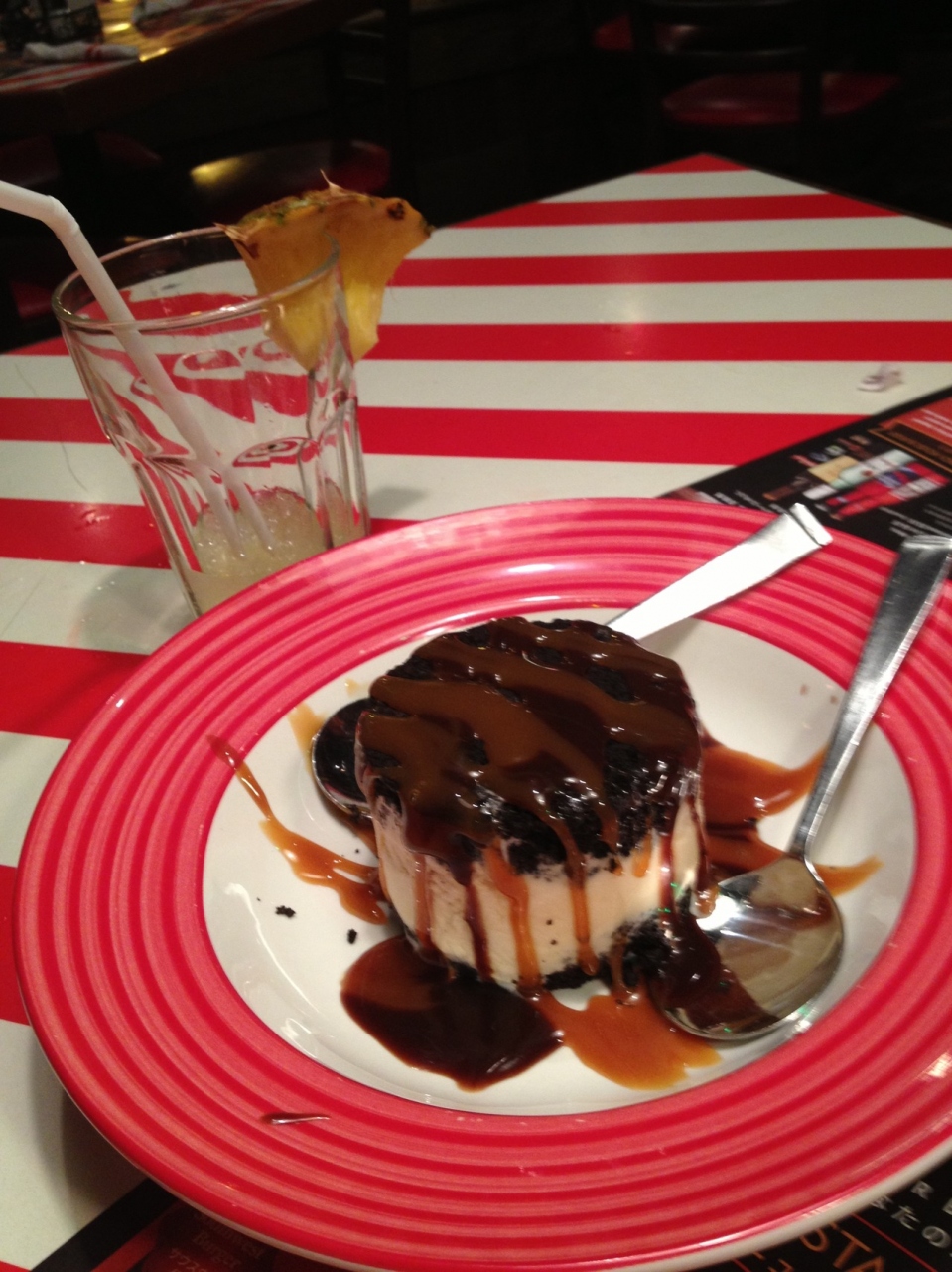 スタックの方も気さくで写真なんかも一緒に撮ったり、ボトルジャグリングをしてたりと... 続きを読むても満足していましたが、そんな中でサービスだとポテトをくれ、ドリンクも持ってきてくれました。『サービス』だと言って。私たちが頼んだのは、パイナップルが入ったサラダ14$とノンアルコールドリンク2杯。あとは店員さんがサービスだと言って出してきたものです。なのにお会計は50$。お店に出てからおかしくない?って思いました。楽しかったから浮かれてたのもあります。レシートも出されずそのまま帰った私たちは何も言えないのは分かっています。ほんとうに悔しいし、腹立たしいです。写真も見るだけで腹が立ちます。みなさんもサービスだと言ってもレシートはちゃんと確認してください。私たちの隣に座ってた女性二人組もサービスだとドリンクをもらっていた位なので。そういう商売の仕方なのか。と思いたくなるレベルでした。 閉じる投稿日:2013/09/03