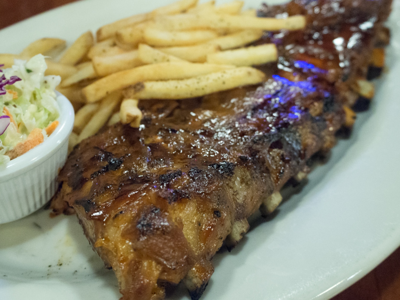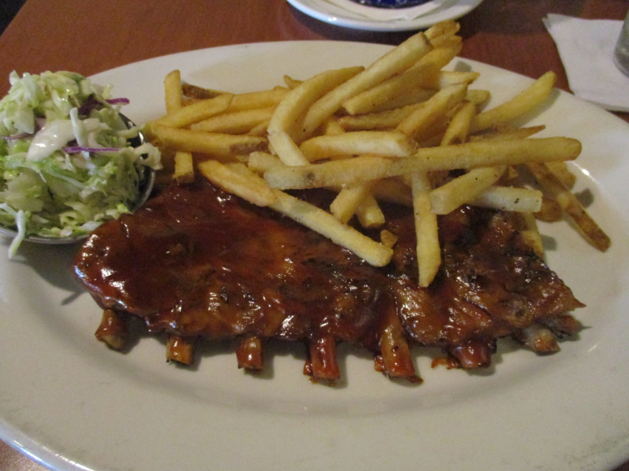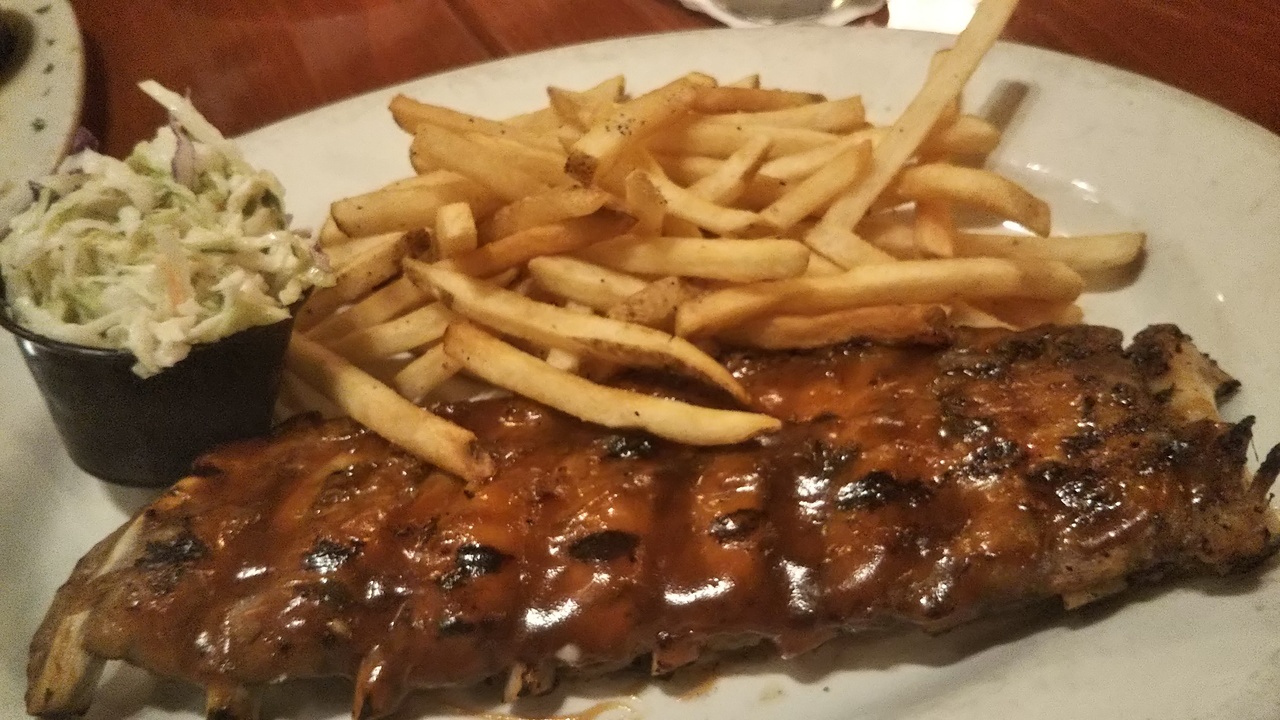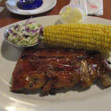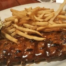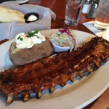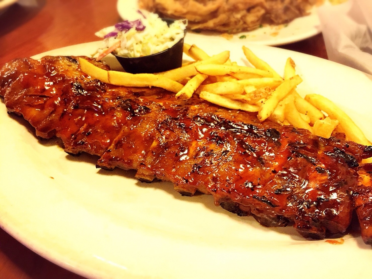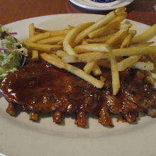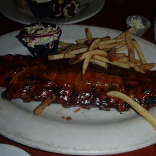 21時を過ぎて食べるところを探してみると意外と多くはなく、遅くまでやっているこの店に入りました。スペアリブは食べるところが... 続きを読む少ないというイメージがあり、最初は気が進みませんでした。でも、出てきた肉は、骨の周りにたっぷりとジューシーな肉がついていて、とても食べ応えがありました。甘辛いバーベキューソースがかけてあり、ビールにとても合いました。サイドディッシュにご飯かフライドポテトが選べますが、フライドポテトが美味しかったです。またkoukouというクーポンブックを持っていくと、フライドオニオンがサービスされました。カリカリで中がとろっとしたオニオンは甘くて美味しかったです。
