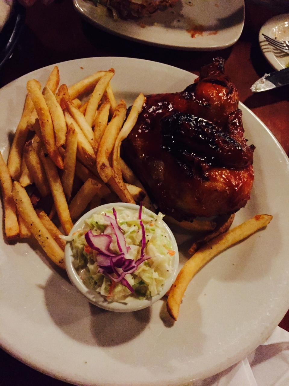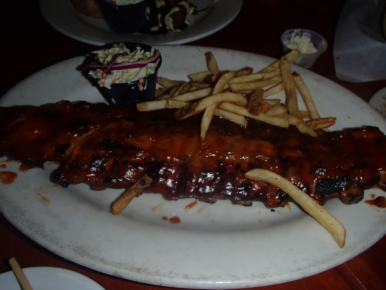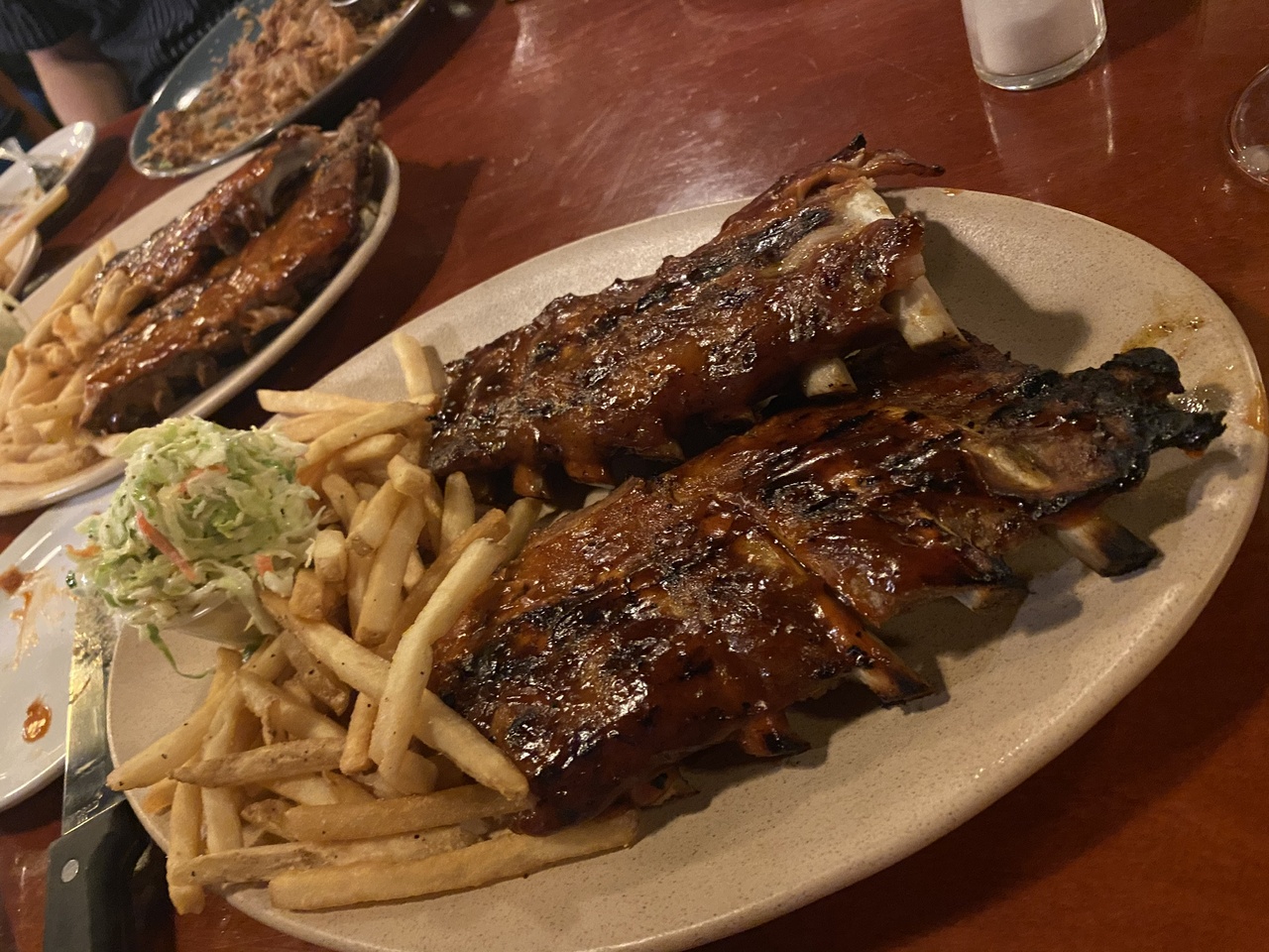 21時を過ぎて食べるところを探してみると意外と多くはなく、遅くまでやっているこの店に入りました。スペアリブは食べるところが... 続きを読む少ないというイメージがあり、最初は気が進みませんでした。でも、出てきた肉は、骨の周りにたっぷりとジューシーな肉がついていて、とても食べ応えがありました。甘辛いバーベキューソースがかけてあり、ビールにとても合いました。サイドディッシュにご飯かフライドポテトが選べますが、フライドポテトが美味しかったです。またkoukouというクーポンブックを持っていくと、フライドオニオンがサービスされました。カリカリで中がとろっとしたオニオンは甘くて美味しかったです。