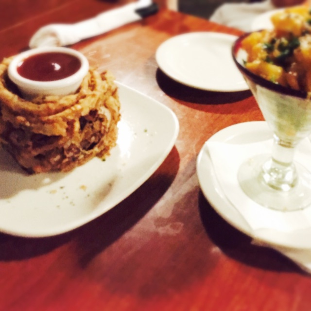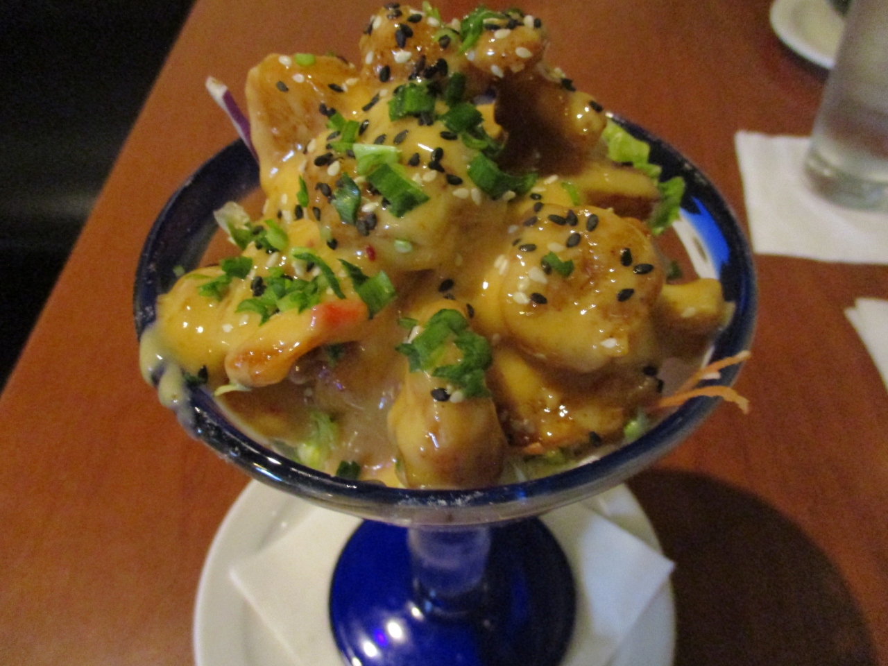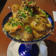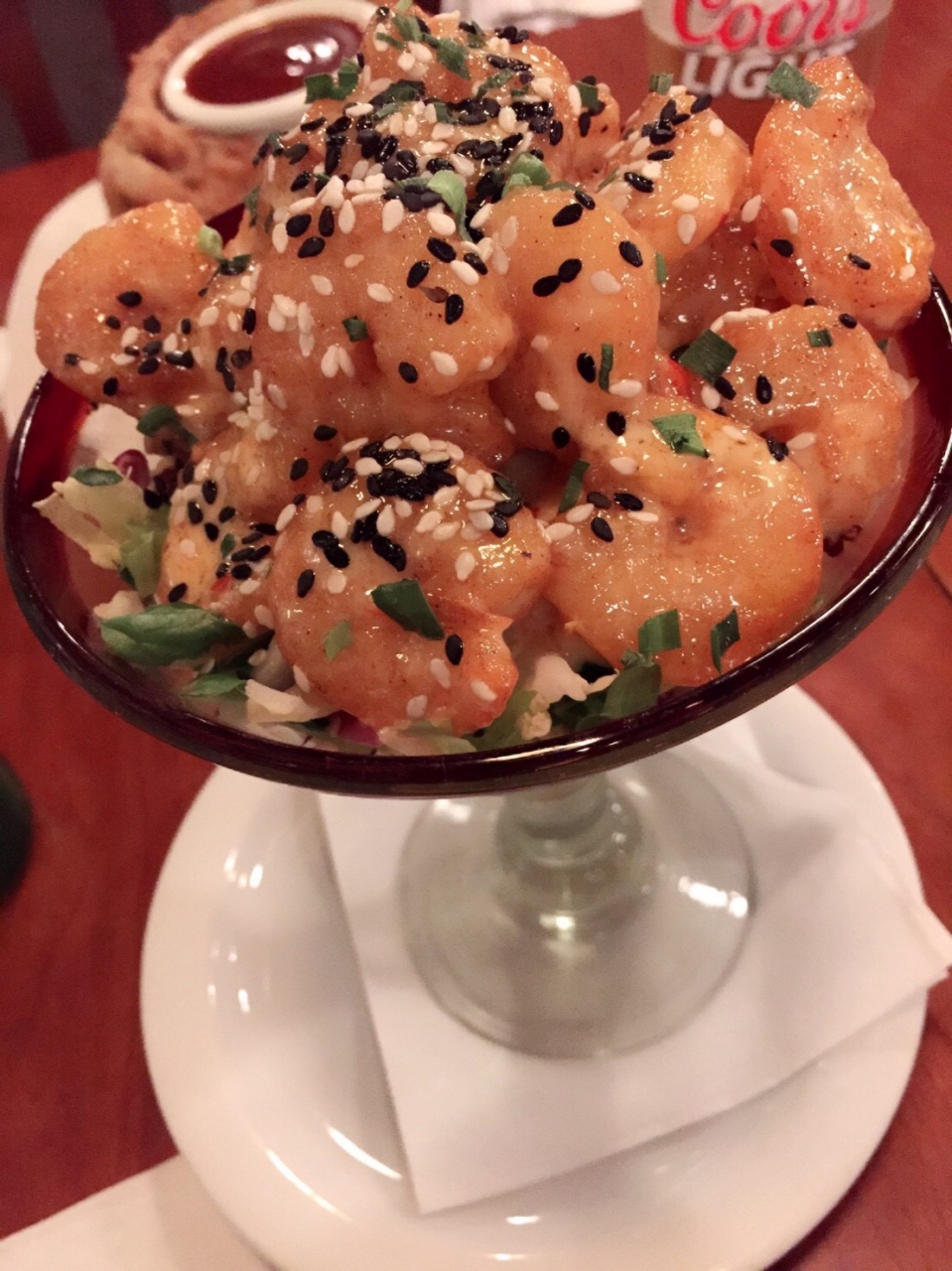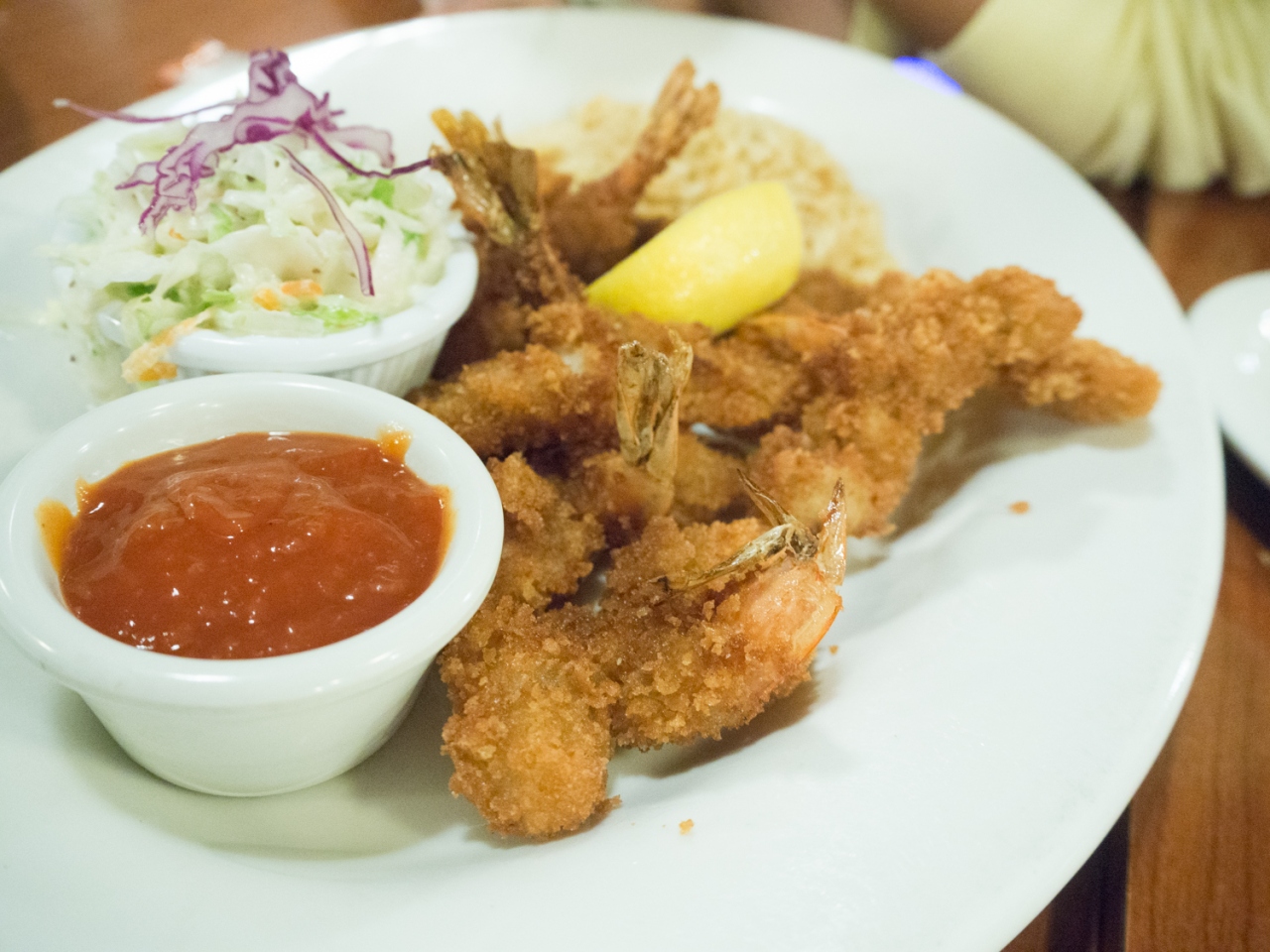 アペタイザー一番人気の特製オニオンローフは、前回来た時に同じくクーポン利用で食べたので、今回のクーポン利用ではシュリンプカクテル(エビのフライピリ辛マヨネーズ)を頼んで前菜として食べながらBBQを2タイプをオーダーして二人でシェアしました。