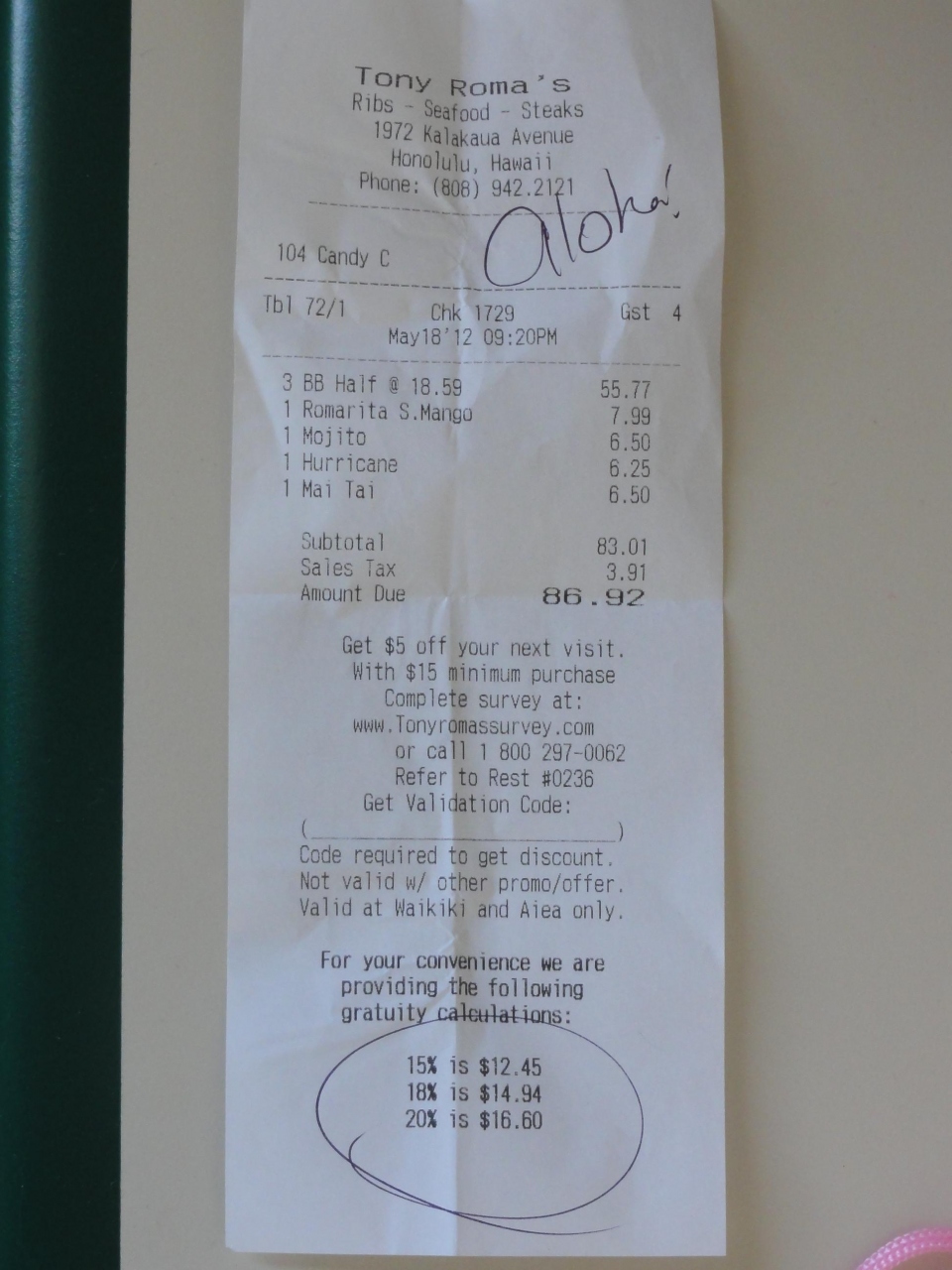 ※トニー ローマ (ワイキキ店)は閉鎖しました