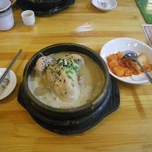 普通の参鶏湯×1と鶏の丸焼き×1を注文。