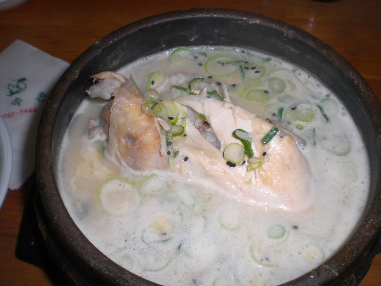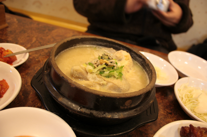 平日の11時頃でしたが並ばずに入ることができました。お店の中はかなり広く、オンドルの部屋は冷えた体を温めてくれます。15000ウォンの参鶏湯は白濁したとろとろスープで鶏肉がホロホロと崩れます。お腹に詰めたもち米、クリ、ぎんなん、高麗人参などもたっぷりで食べごたえ抜群。かなりお腹いっぱいになりました。 閉じる投稿日:2013/01/05