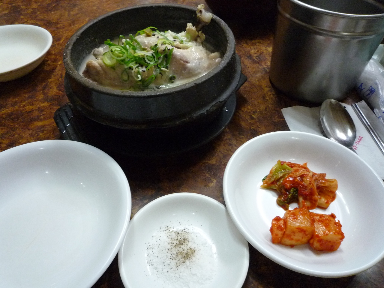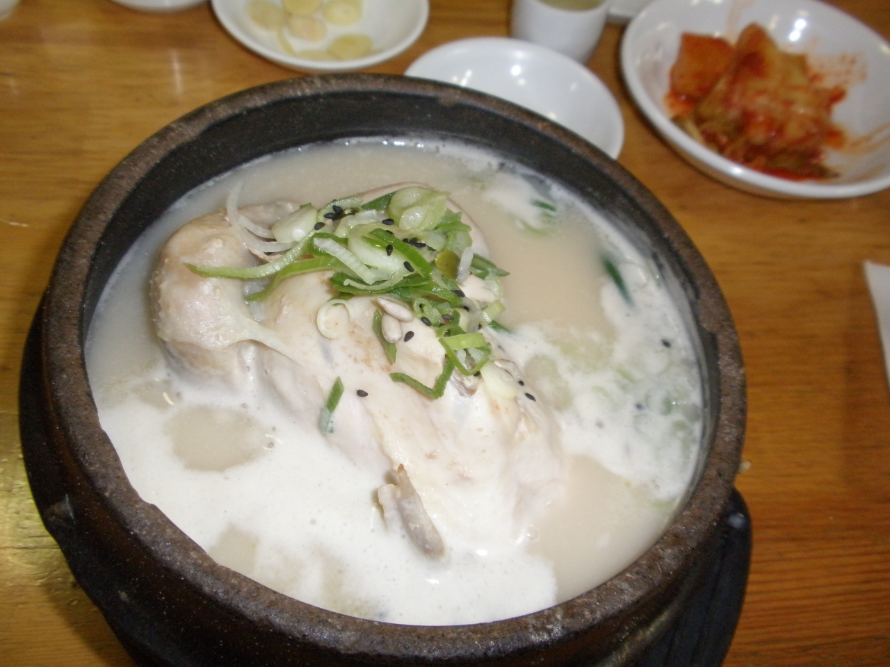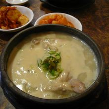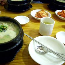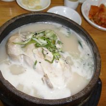日本人向きの参鶏湯です。普通、参鶏湯は味が薄くて塩や胡椒を入れますが、ここのスープはいわゆる白湯スープで味付け済み!OKです。
