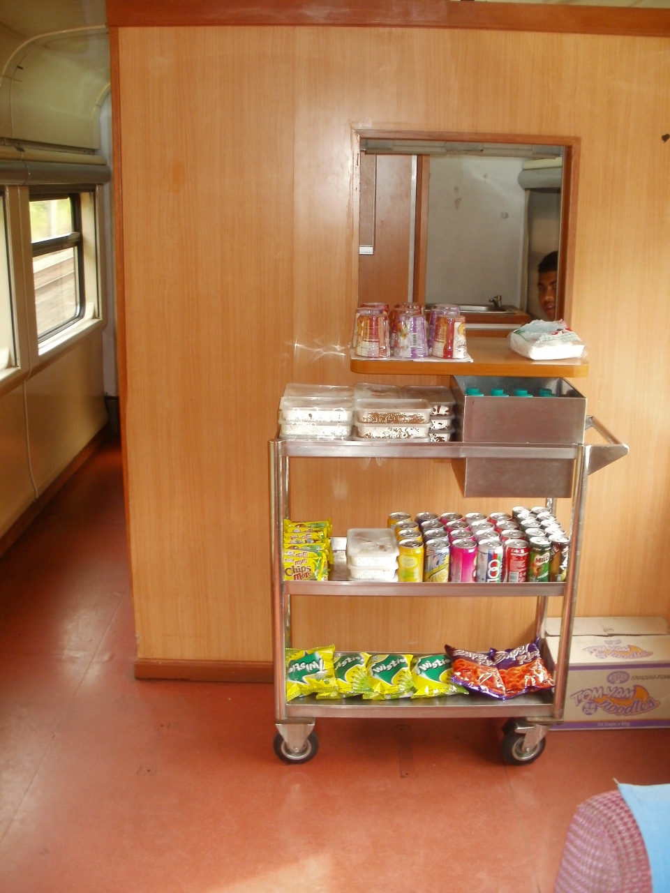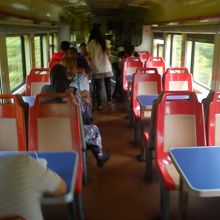 車内販売です。弁当も売っていますが、買い込んだ方が良いです!