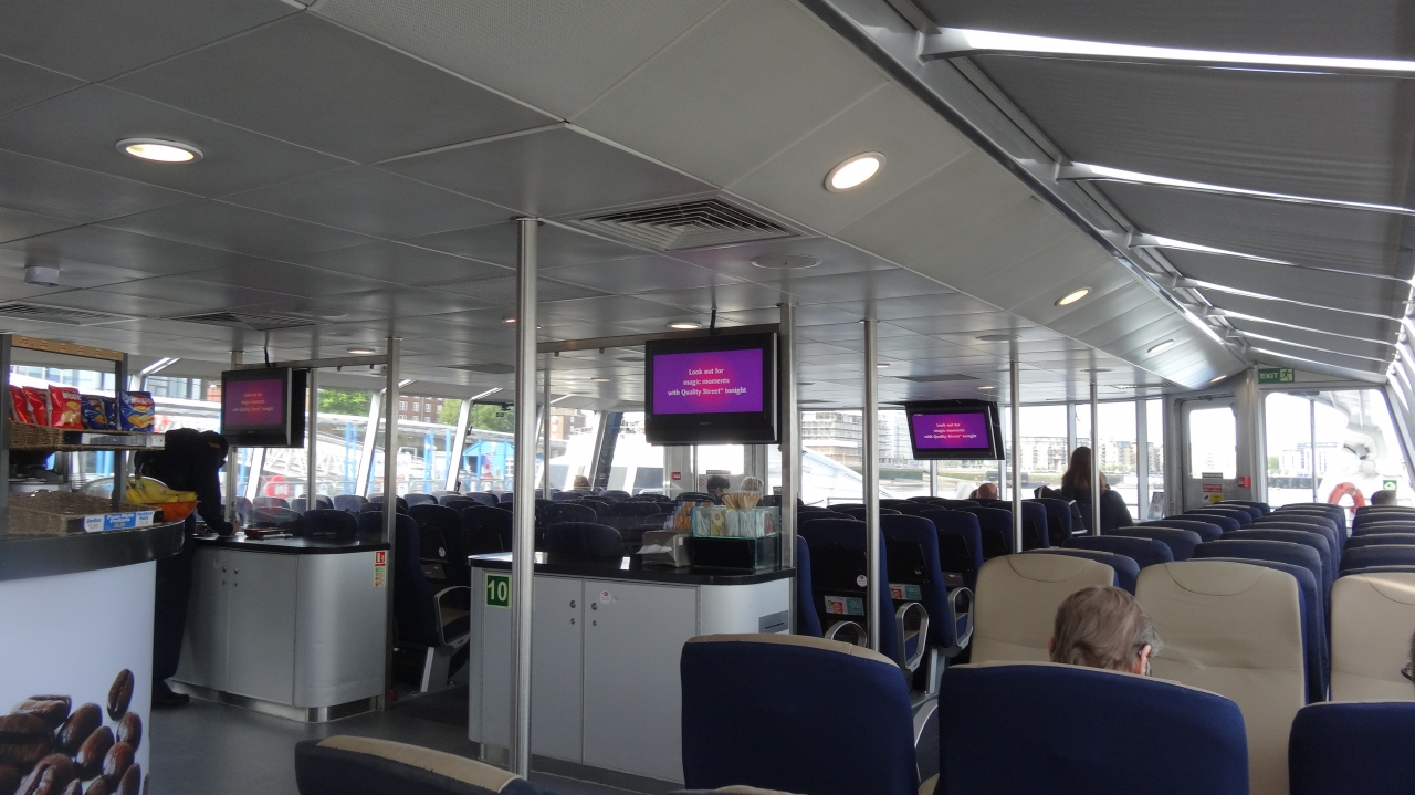 GreenwichからEmbarkmentまで利用しました。通勤ボートということで、船着場がとても多いのですが、停まってい... 続きを読むる時間がとても短くびっくりしました。ボートの中にはちょっとしたバーがあって救命具を常時装着したスタッフがカウンターでサービスしていました。有名な橋の下をくぐるときは後方のオープンデッキに移動して写真を撮りましたが、屋根がついていることもありいまいちの出来でした。