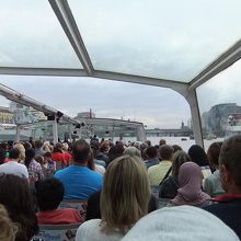 船内は自由席で1階席と2階席がありました。2階席はオープンデッキになっています。クルーズ中は川から見える建物などをガイドがアナウンスしてくれます。テープのアナウンスではなく、私の時はおじさんがマイクでアナウンスしていました。当日は、少し曇り空だったので、船上は少し肌寒かったですが、とても心地のよい時間を過ごせました。 閉じる投稿日:2005/07/10