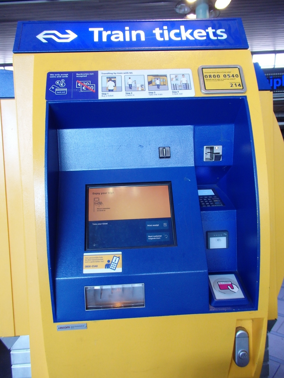 アムステルダムでの自動券売機、トラベルカードも購入可能