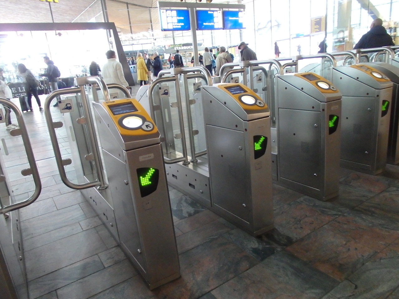 大きな鉄道駅では改札口にカード読み取り機が並んでいます。