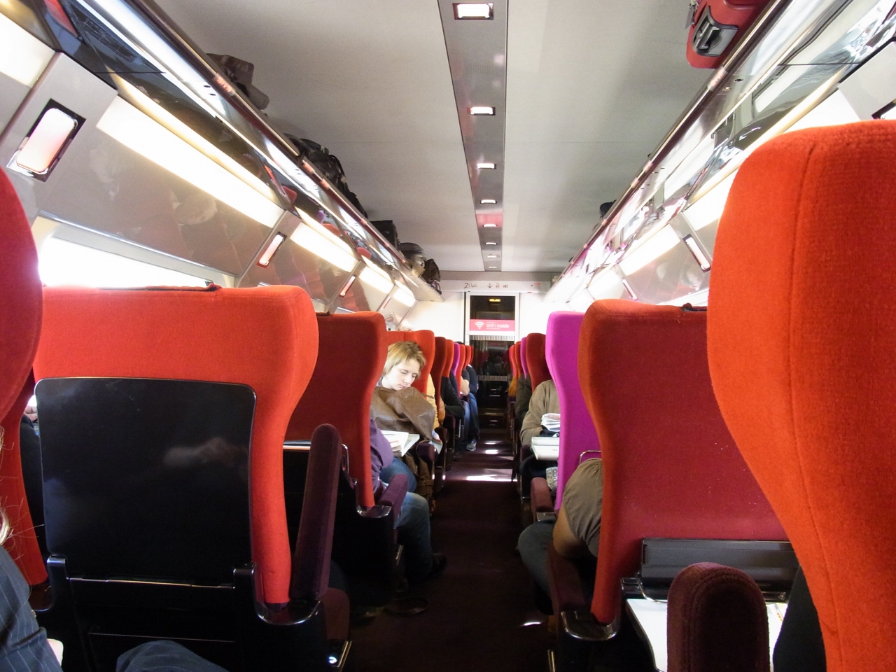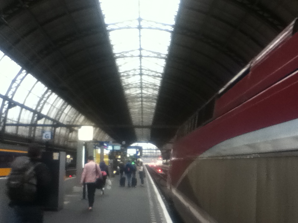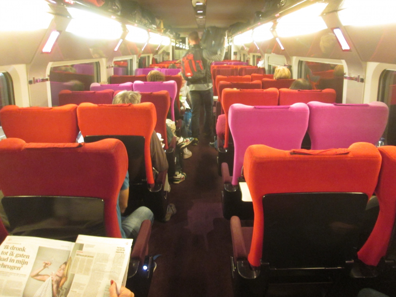 アムステルダム中央駅を出るときはこんな車内だったのに