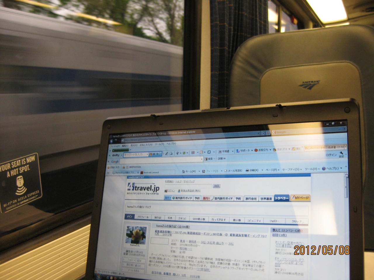 WIFIが無料などはビジネス特急らしい。車内はきれい。