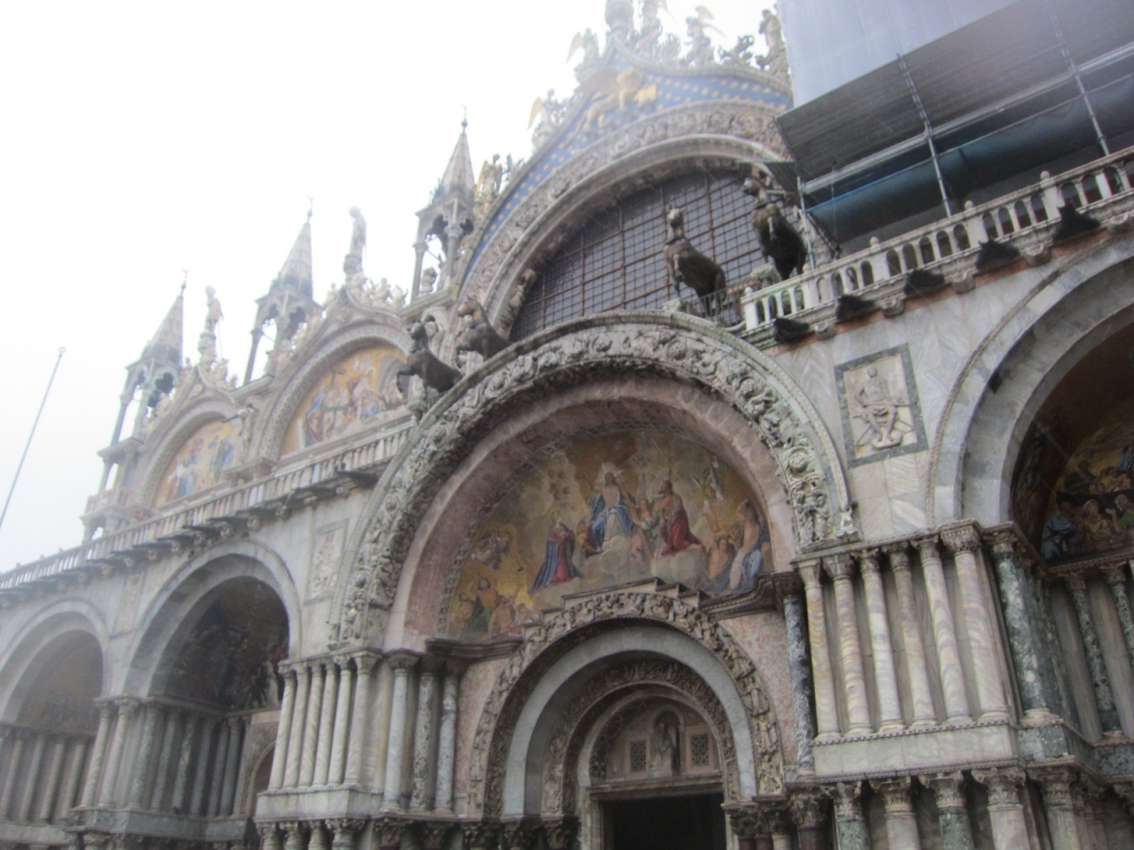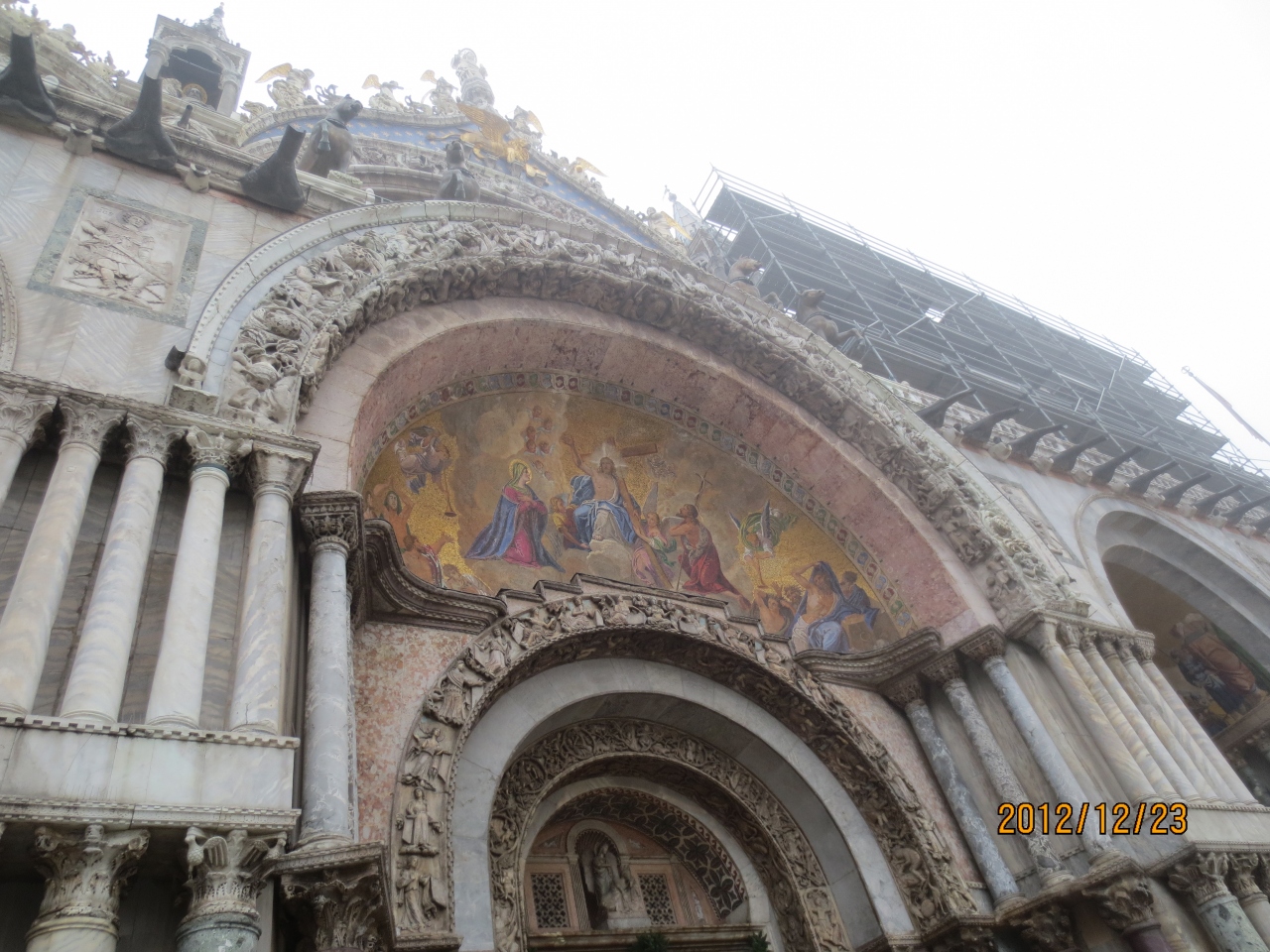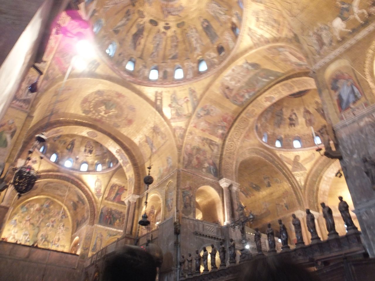 ベネチアといえばサンマルコ寺院。私が訪問した時には外壁の一部が改装中でしたが、それでも独特の佇まいが美しかったです。中に入... 続きを読むってみると薄暗い中に蝋燭の灯りがともり、神秘的な障壁画が迎えてくれました。この時ほど自分の視力の悪さを悔やんだことはありません。天井全部が美術館みたいなのに、あんまり見えなくて・・・双眼鏡を持ってくればよかった。
