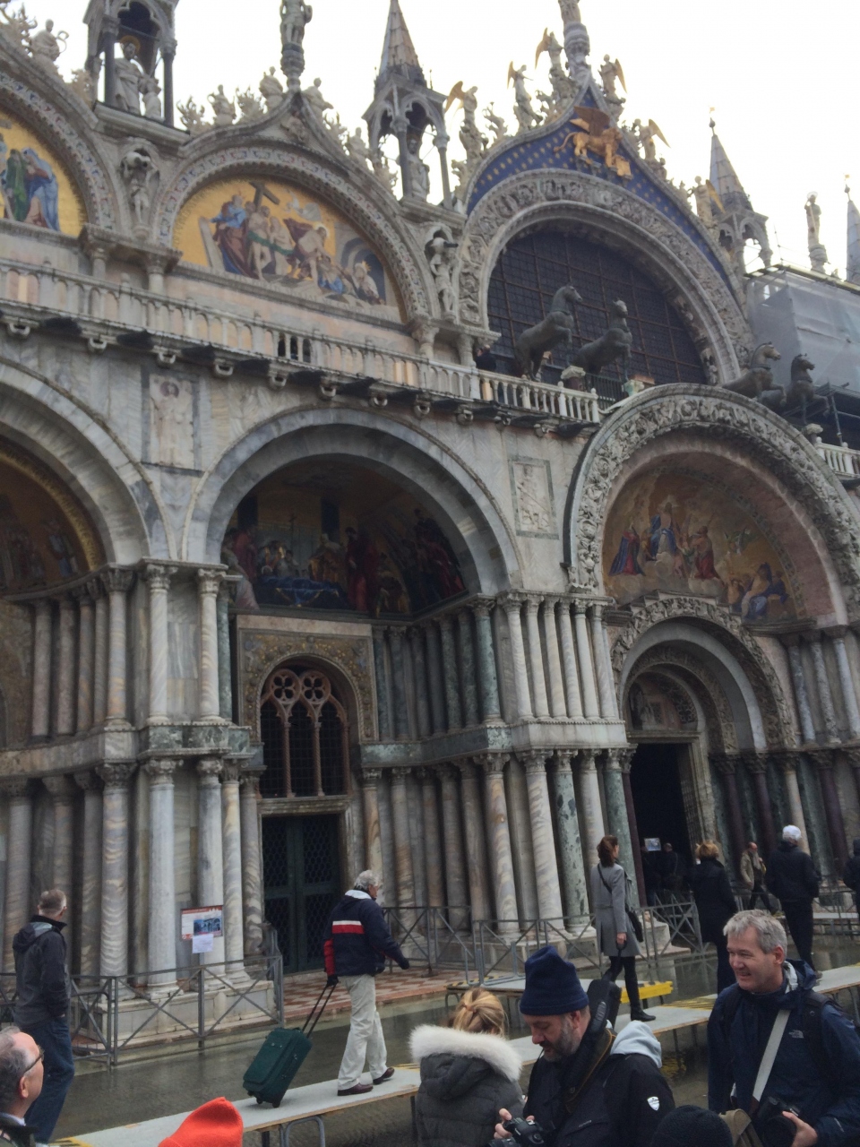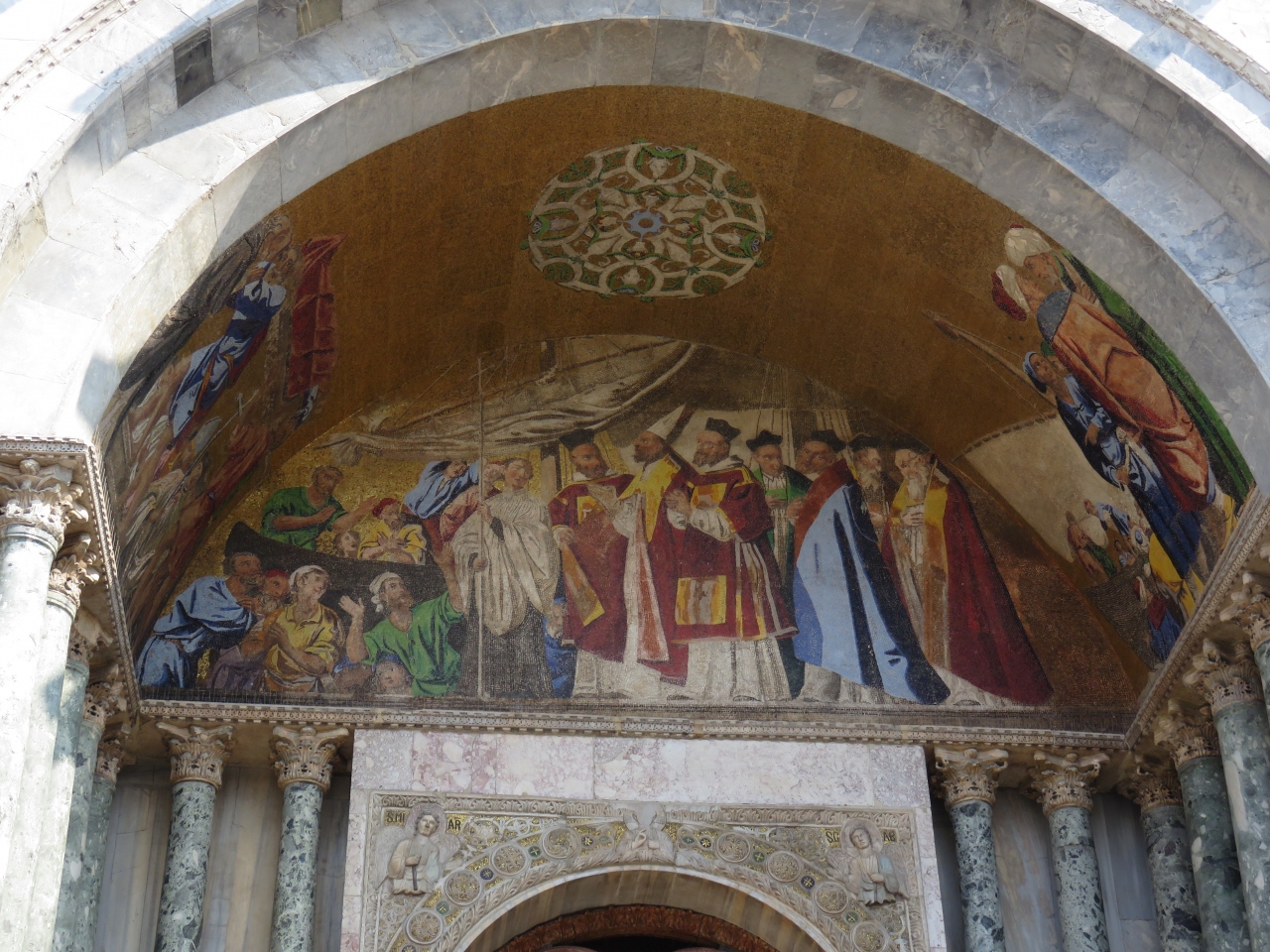 もともとヴェネツィアは日帰り旅行、そのメイ... 続きを読むンもブラーノ島だったので、サンマルコ寺院の内部まで見学することは、入場を有料予約しても十分な時間がないな、と思っていました。実際その通り時間がなかったのですが、それでも、外から見られるだけでもその装飾、特にフレスコ画は見事でしばし見惚れました。