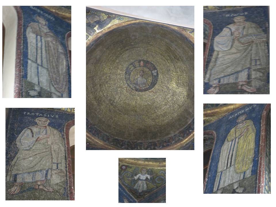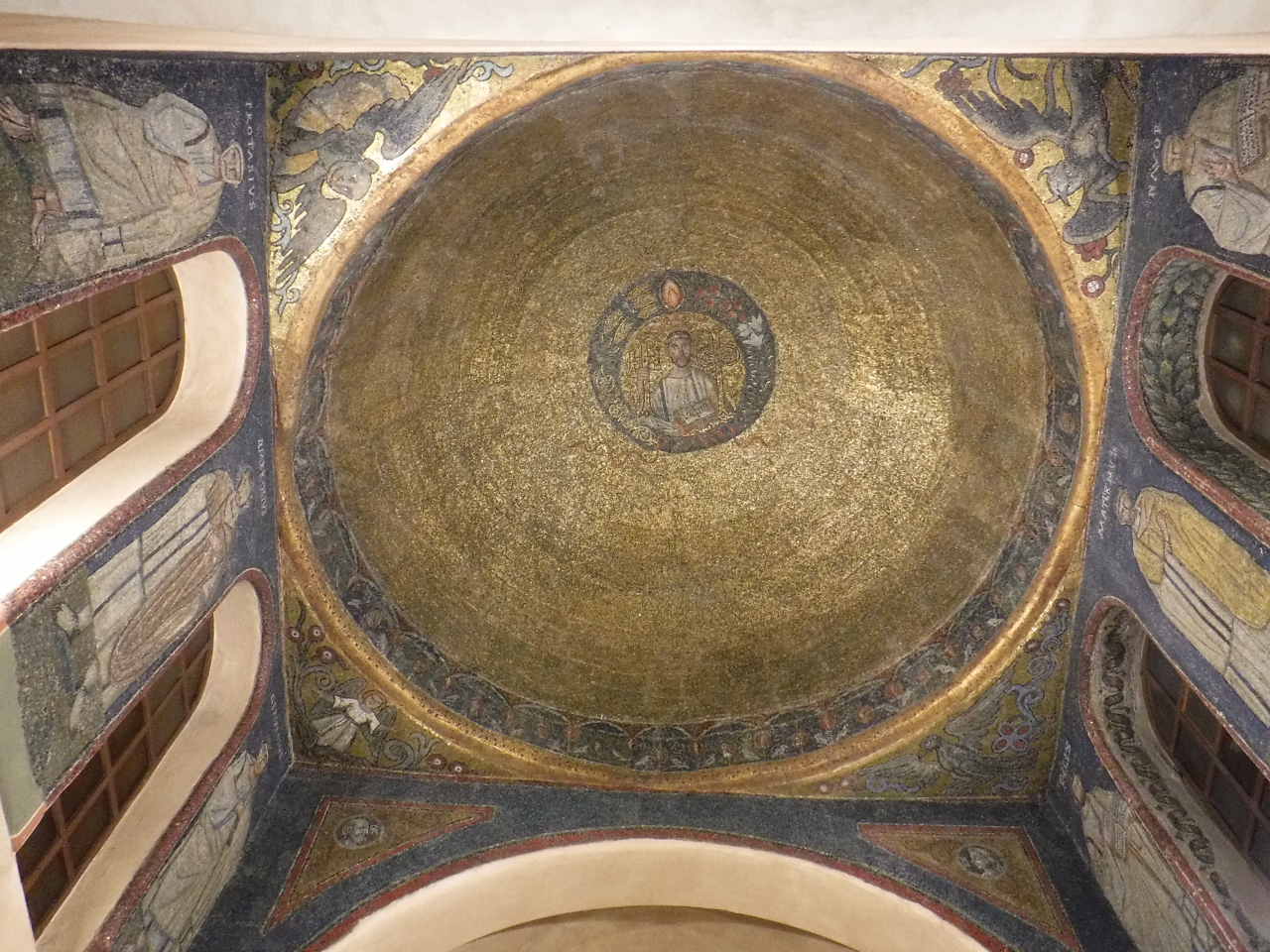 後陣の天井画は4~8世紀のモザイクでキリスト・聖アンブロシウスの生涯が描かれています。