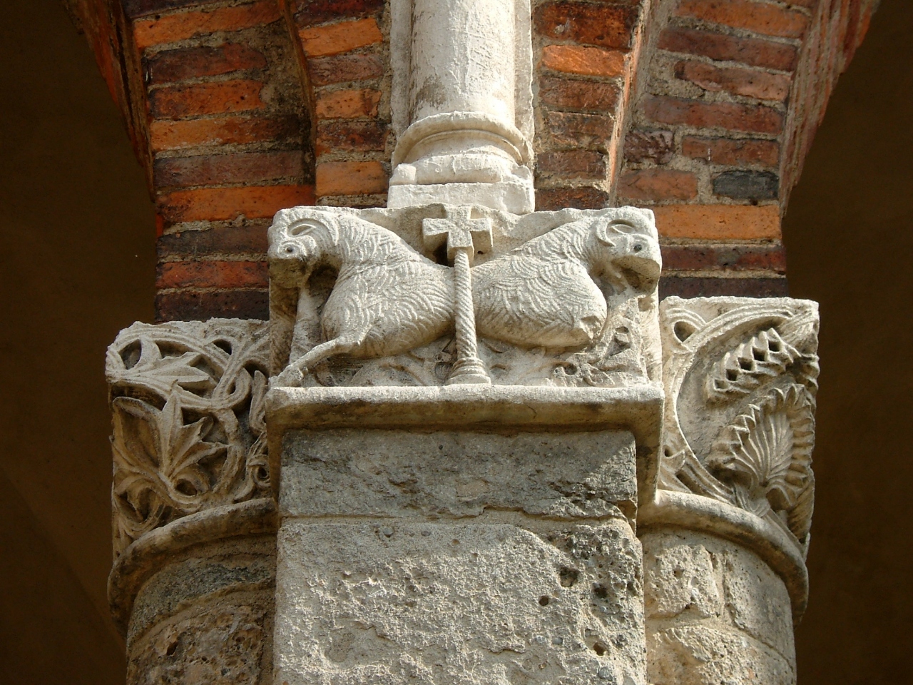 外観は装飾も少なく、一見素朴な教会です。しかし、ミラノ最古のキリスト教会であり、ミラノの守護聖人・聖アンブロシウスにささげ... 続きを読むられた由緒正しき教会です。教会の前庭を囲む回廊には、ロマネスク教会特有の柱頭彫刻が見られ、これが見所のひとつ。牛やイノシシやヒツジやペガサス?など、様々な生き物(架空含め)の彫刻は、素朴というか、ひとつひとつの表情におかしみがあり、見ているとなんだか和やかな気持ちになります。中に入ると、黄金の祭壇飾りがあり、これも貴重な宝物ですが、近くに寄ってしげしげ見ることはできません。それよりも祭壇の上の丸天井の、モザイクの天井画が立派です。ふらりと訪れるのもいいですが、事前にある程度の予備知識がある方が、楽しめるかもしれません。パリのサン・ジェルマン・デ・プレ教会や、同じくパリの建築・文化財博物館が気に入った人には、ぜひお勧めします。 閉じる