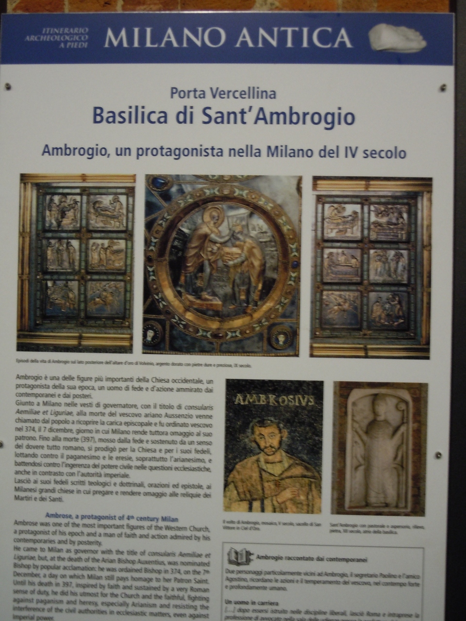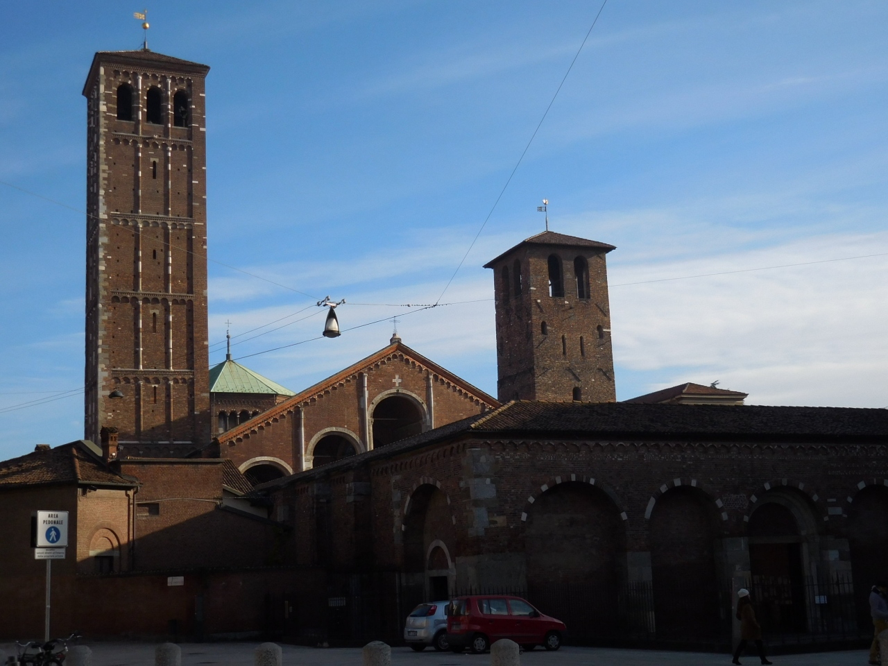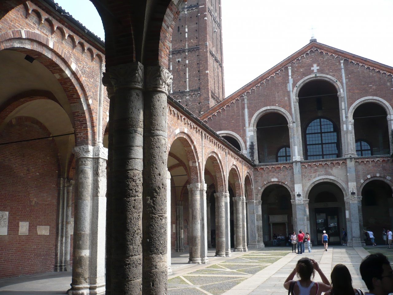 ミラノで一番古い教会です。地下鉄M2線のS.AMBROGIO駅で降りて辺りを見回すと、古いレンガ造りの塔と、空掘りのような... 続きを読むものが見えると思います。そちらに向って歩いていけば案内板が出ています。