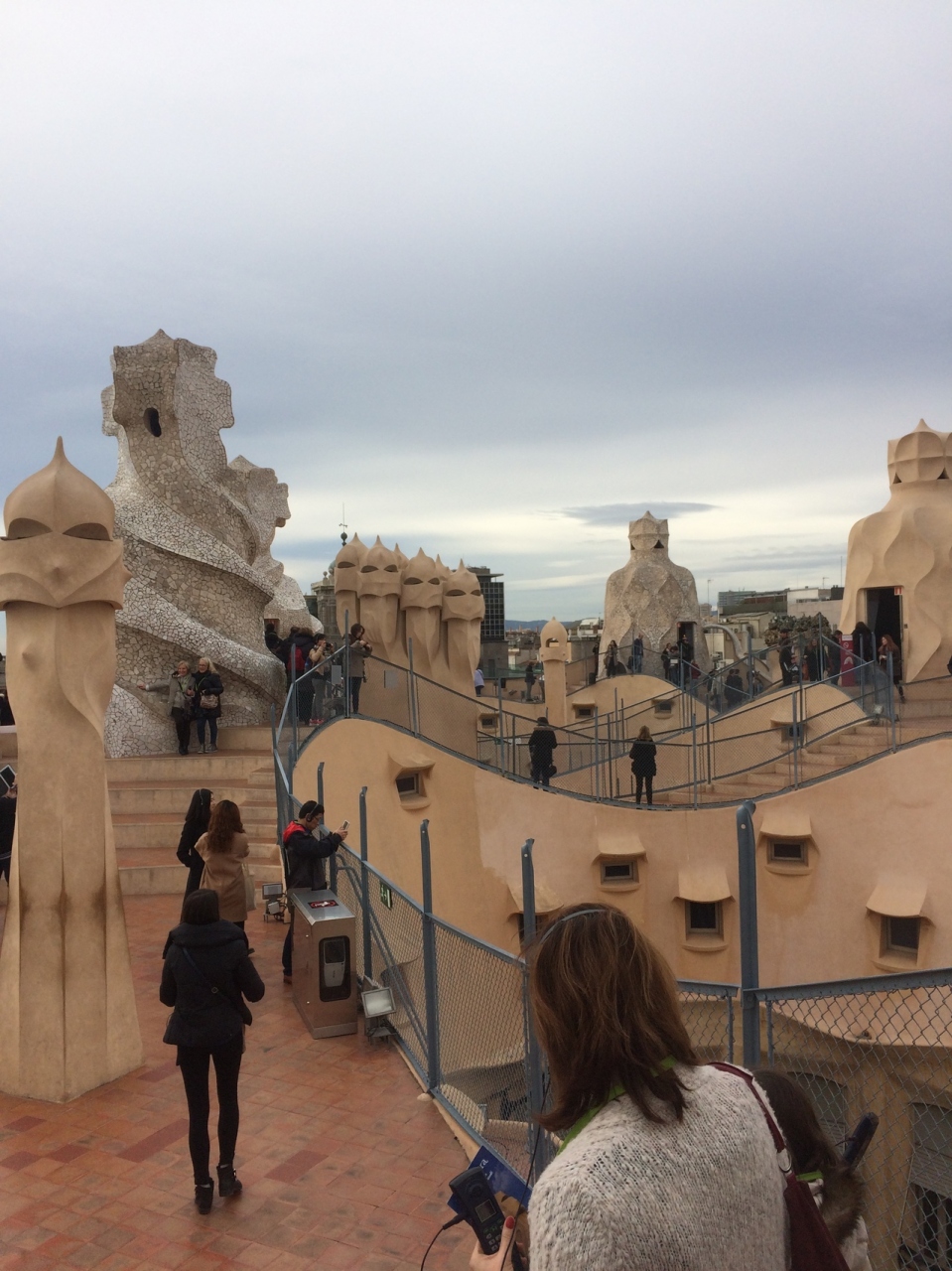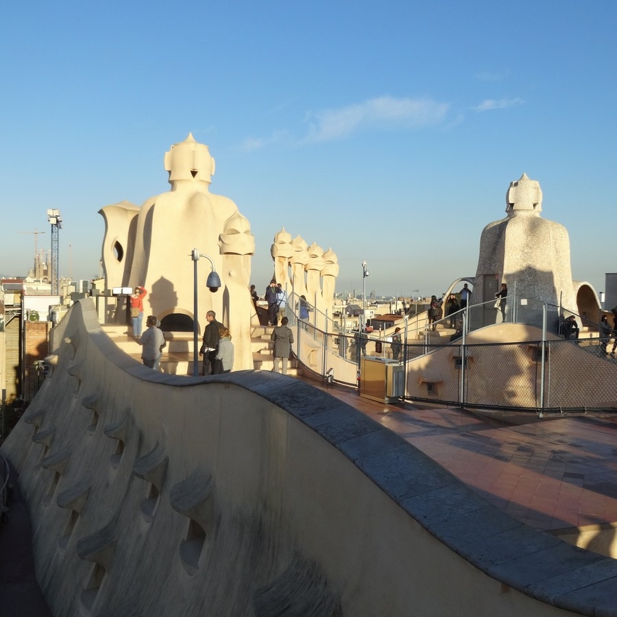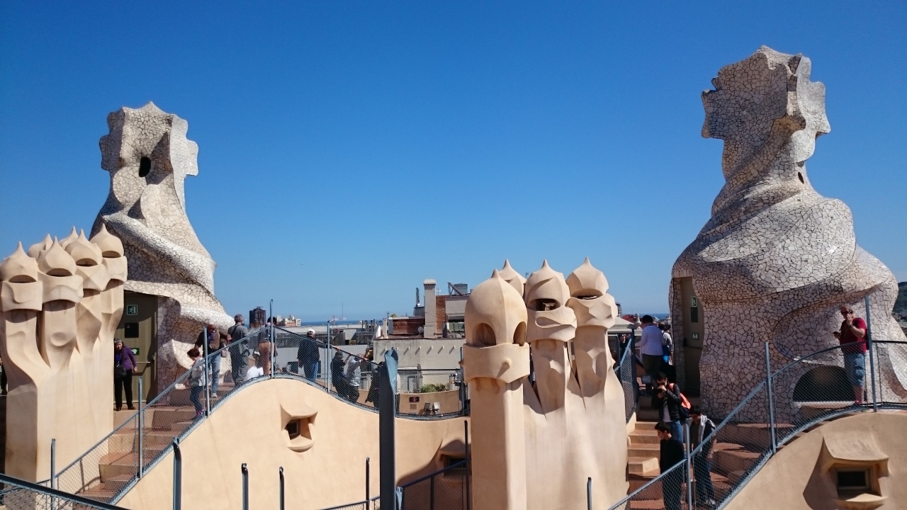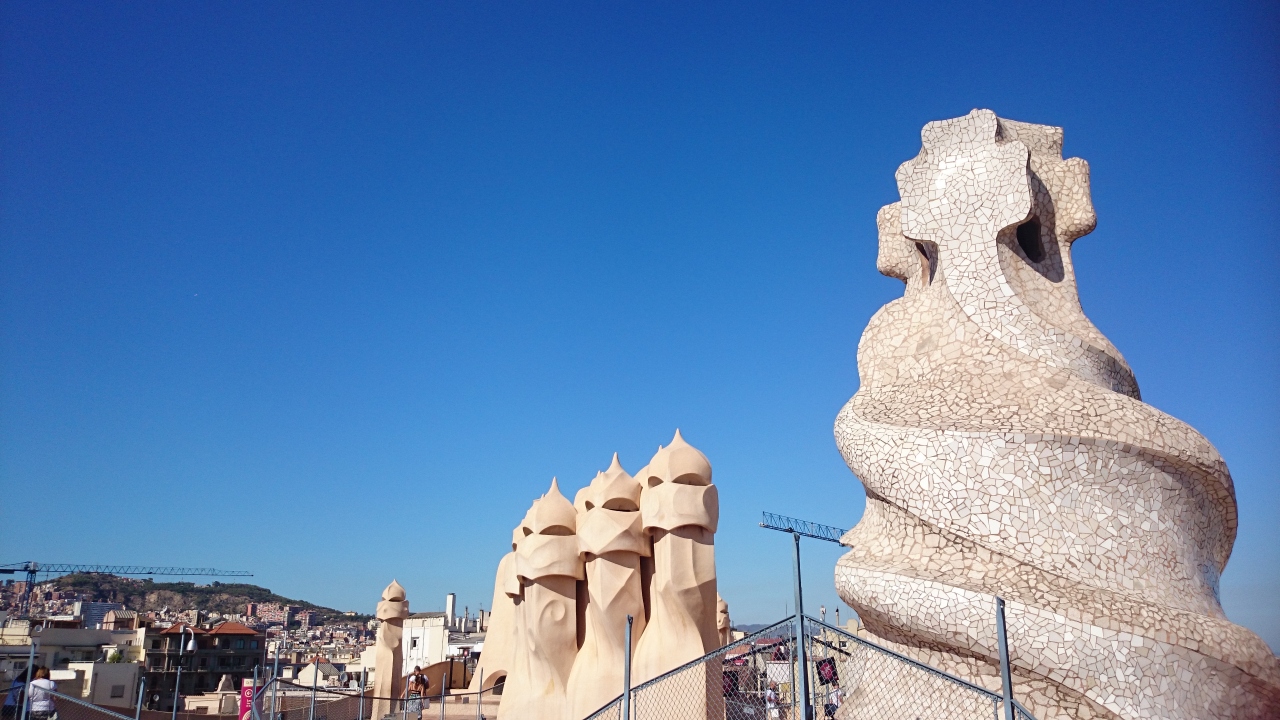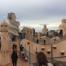 カサ・ミラの屋上の建築物がバルセロナの建築基準法に違反している高さだということで一時は取り壊しの危機にさらされましたが、なんとか取り壊しを免れ現在に至っているんだとか。