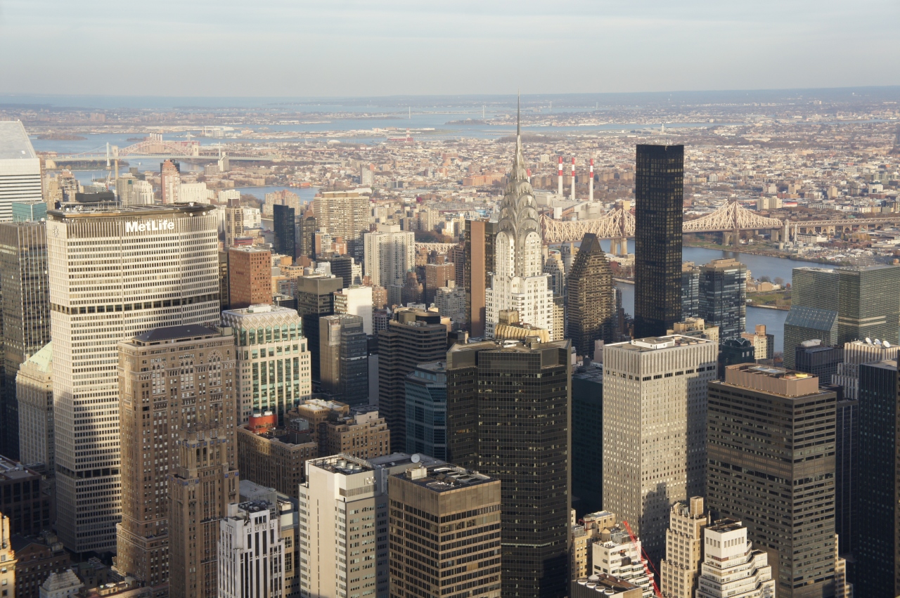 トップオブザロックからの夜景ももちろん綺麗でしたが、夕景はビルが1つ1つ鮮明に見えるので、かなり圧巻!でした。ものすごい数のビルがひしめいているのがわかります。ウォール街のほうは高いビルが建っているし、フラットアイアンビルなんかもよくわかります。
